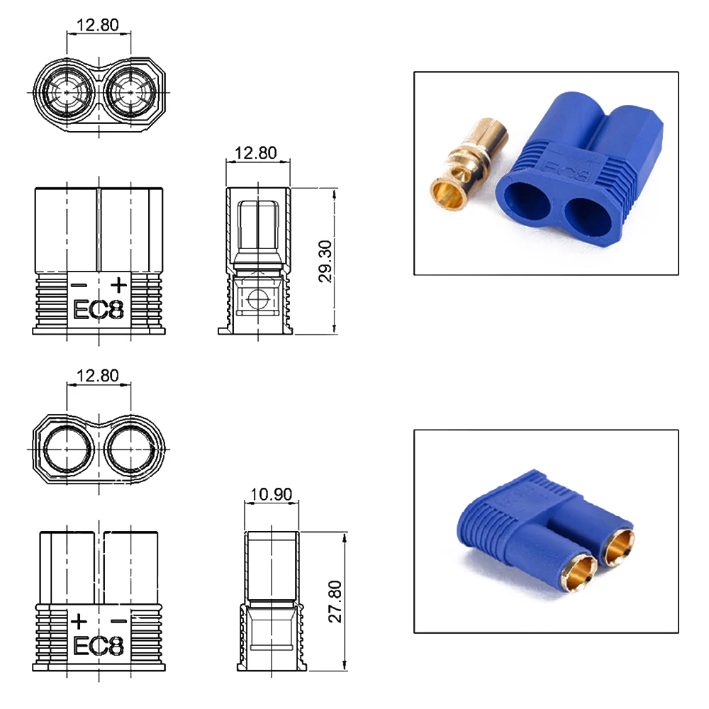 Сильноточный позолоченный штекергнездо EC8 8 мм, 1 пара, штекер-банан, адаптер для RC, ESC, двигатель, Lipo, аккумулятор, автомобильные игрушки