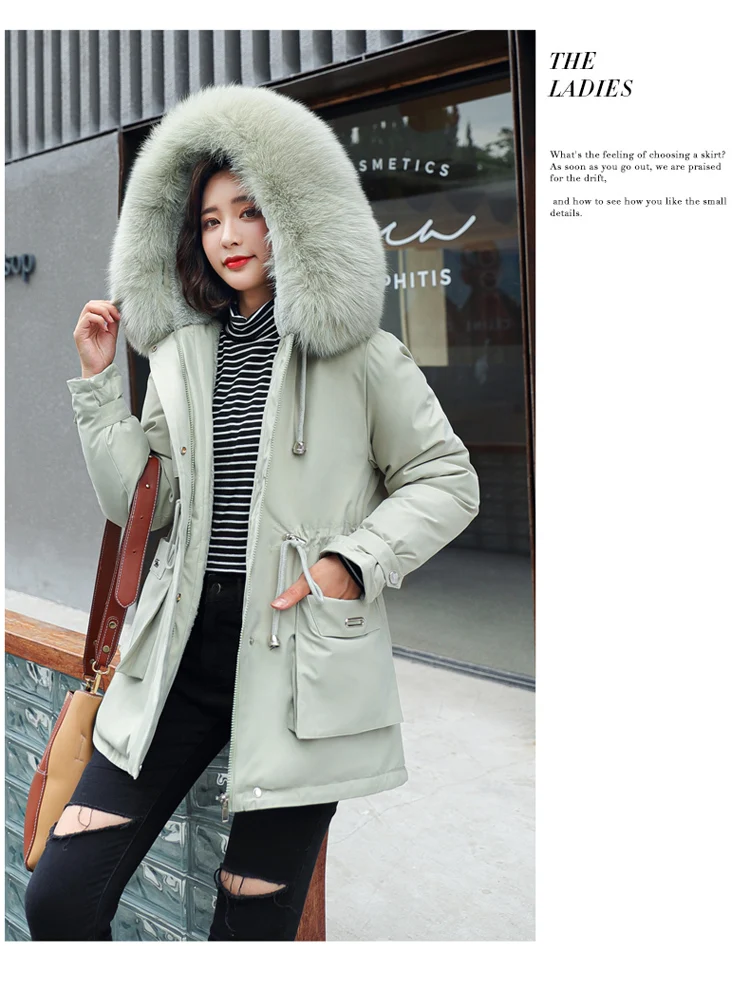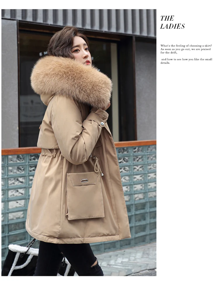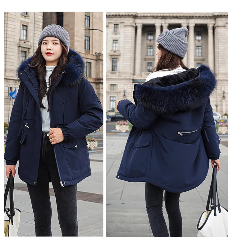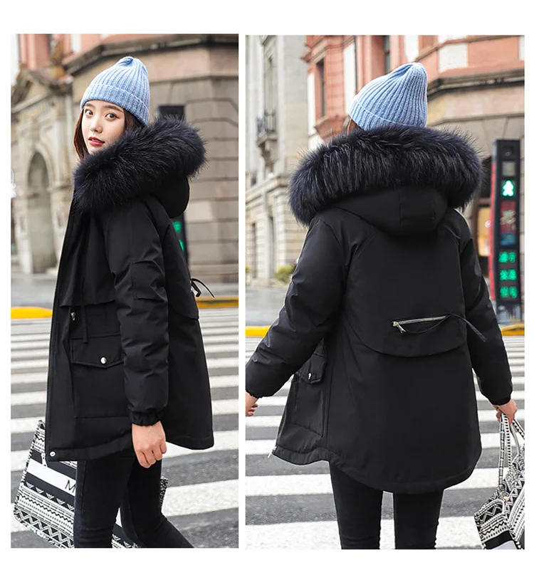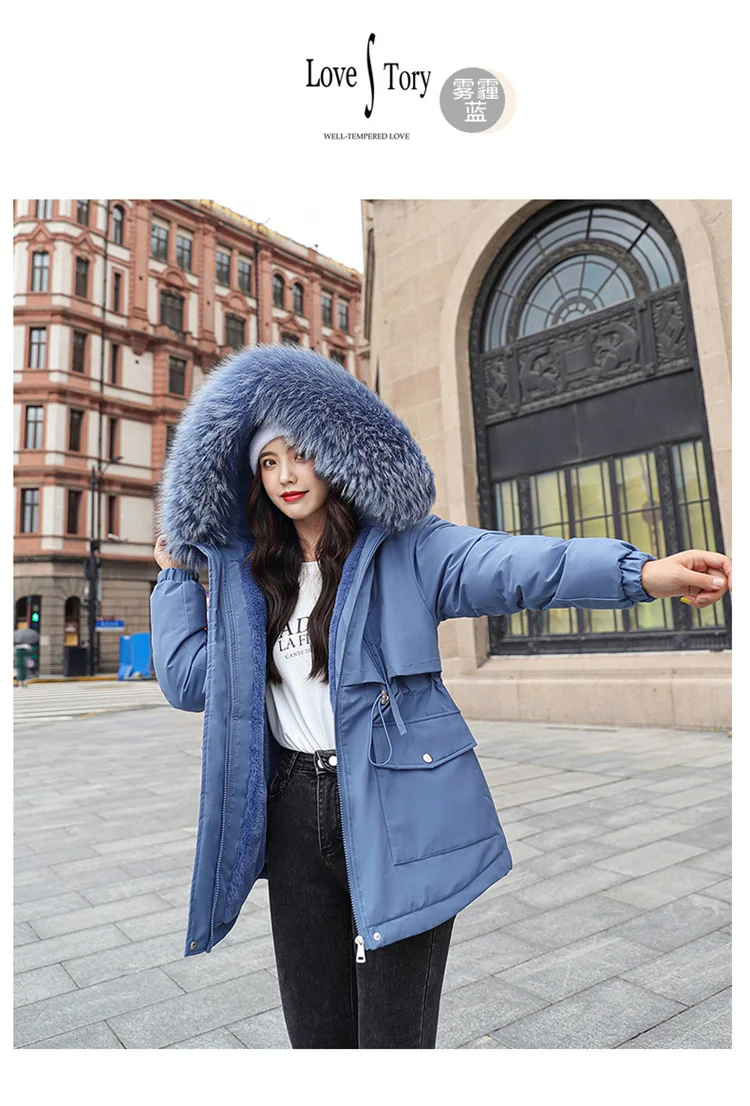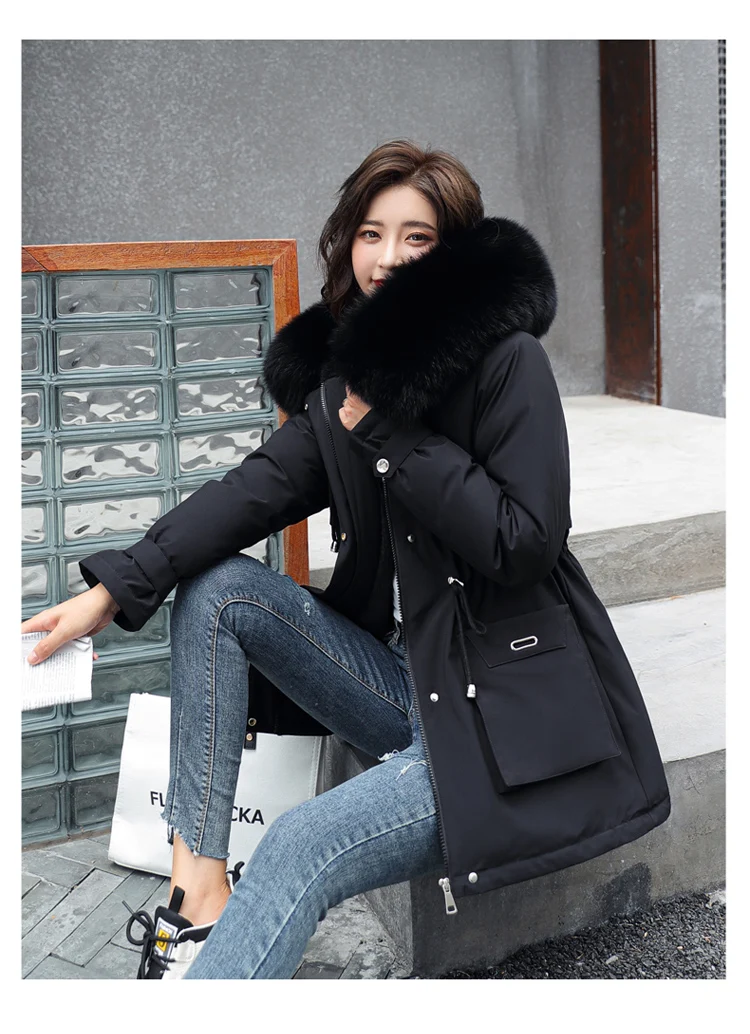 2022 женская утепленная парка с капюшоном, Женская облегающая верхняя одежда с большим меховым воротником, осенне-зимняя куртка, Женское пальто