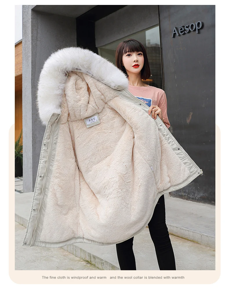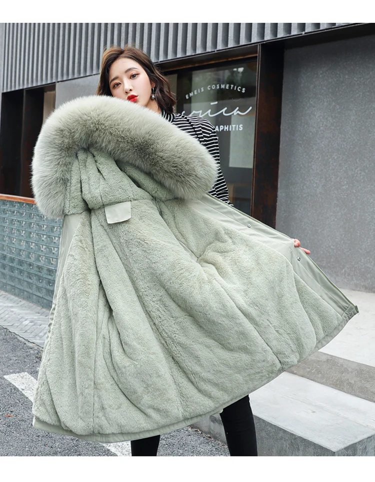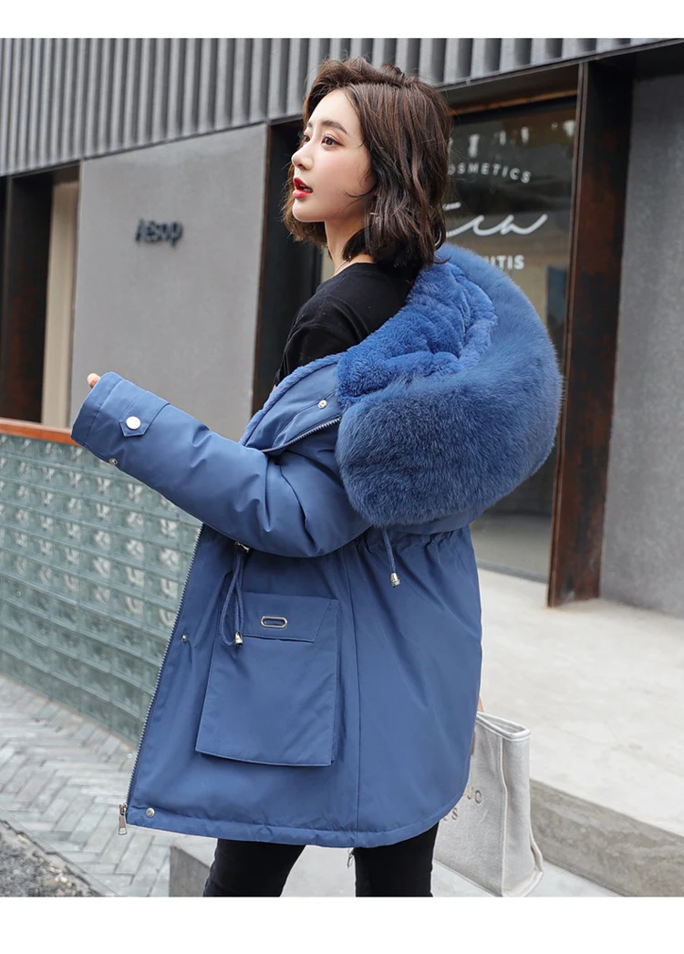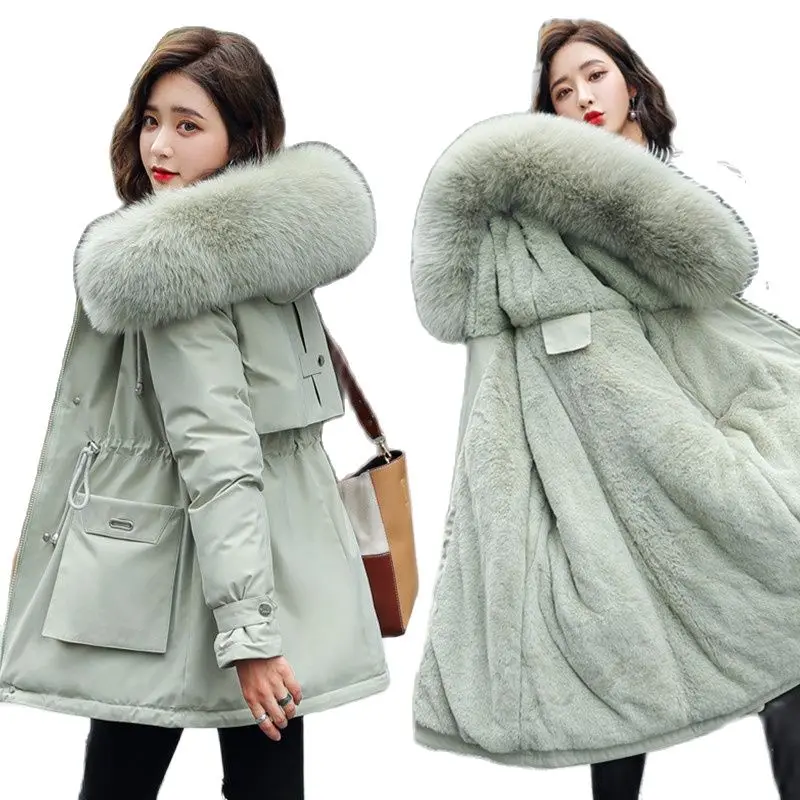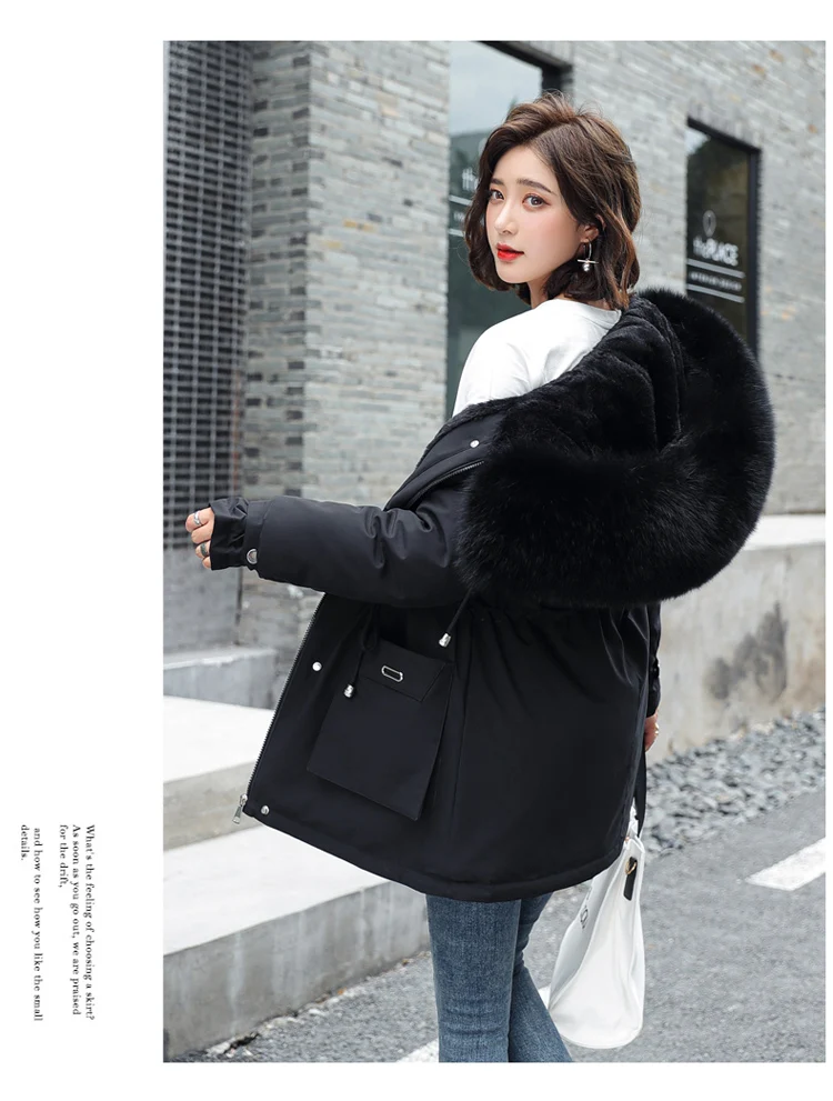2022 женская утепленная парка с капюшоном, Женская облегающая верхняя одежда с большим меховым воротником, осенне-зимняя куртка, Женское пальто