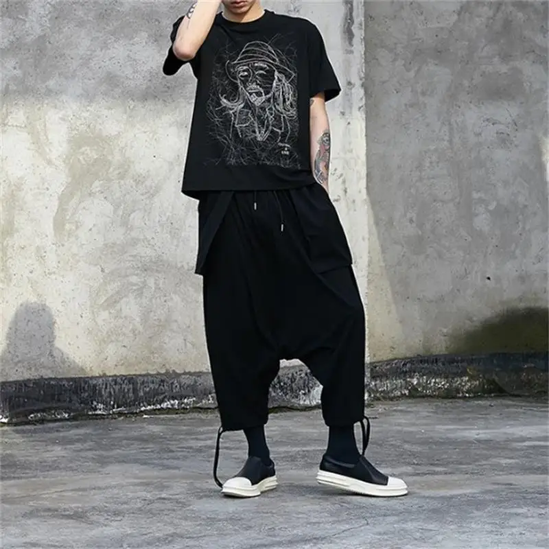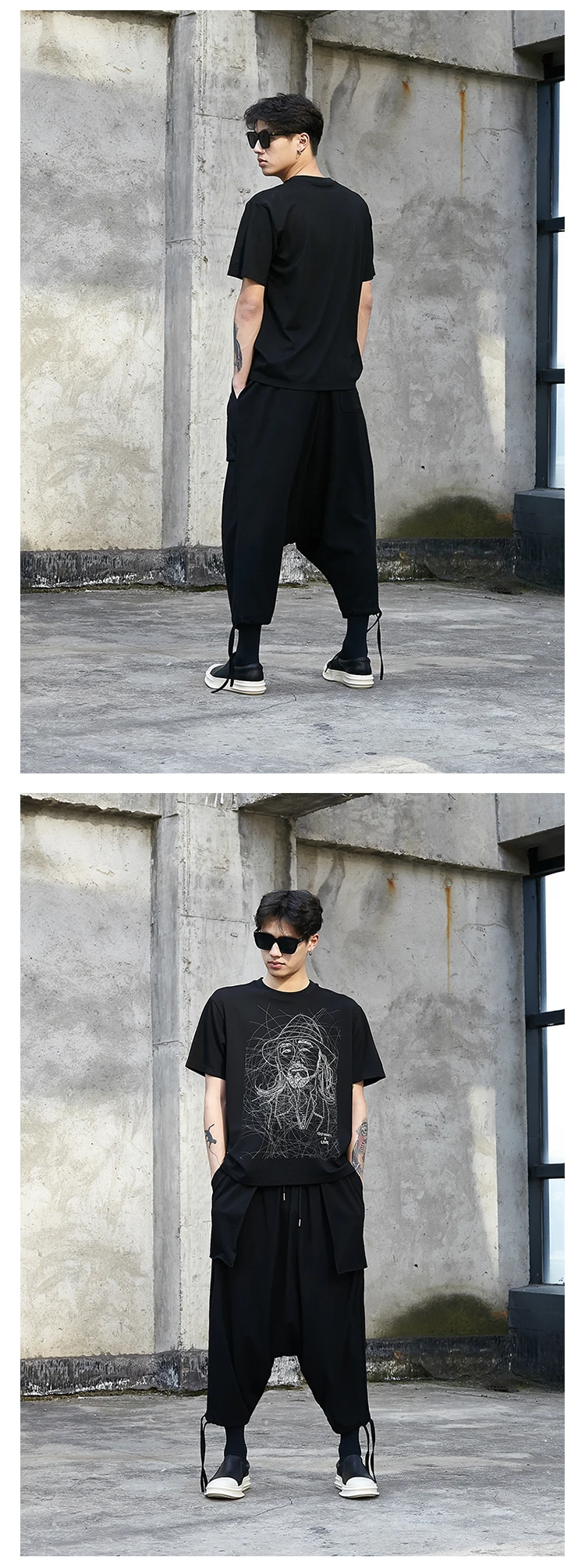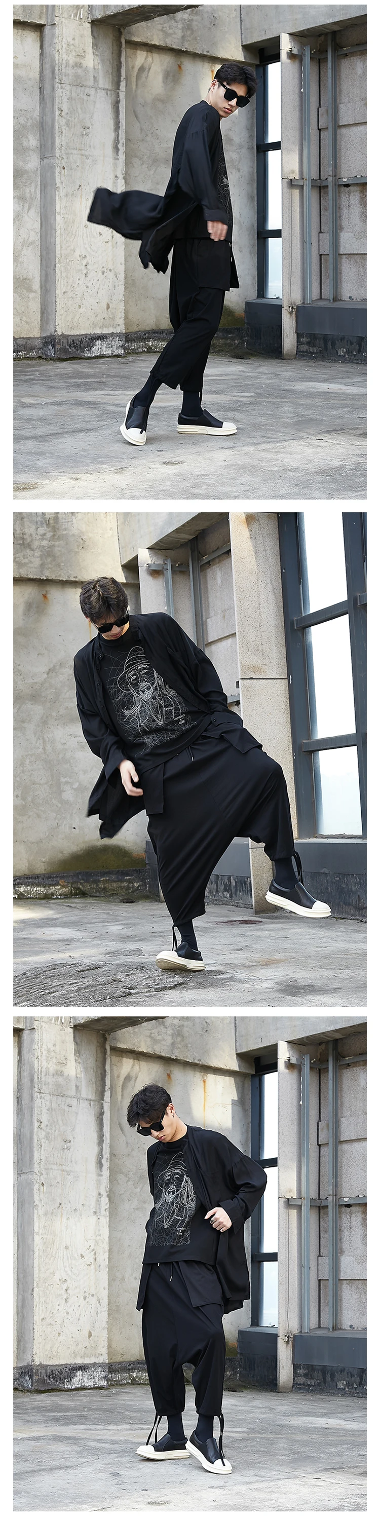 Мужские штаны Yamamoto, черные мешковатые штаны с низкой промежностью, для весны и лета
