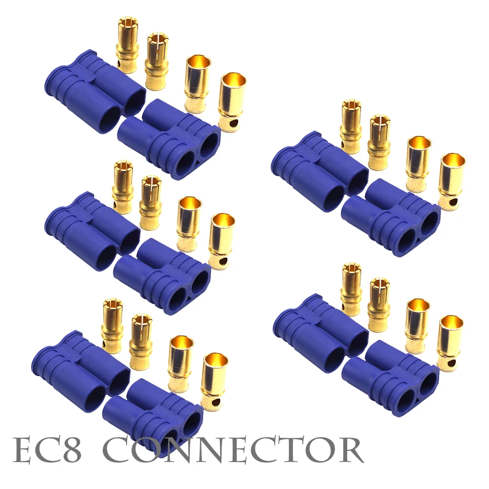 Высокий ток EC8 позолоченный мужскойженский 8 мм пуля контрольные выводы вилки типа банан разъем адаптера для RC электродвигателя с электронным регулятором хода (ESC) Lipo Батарея автомобиля игрушки