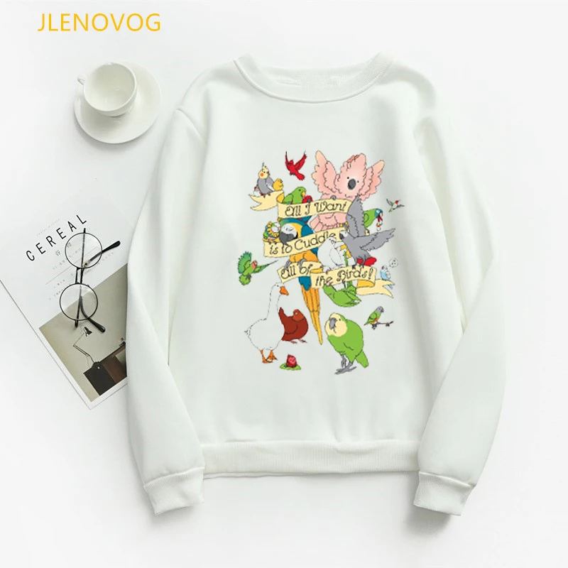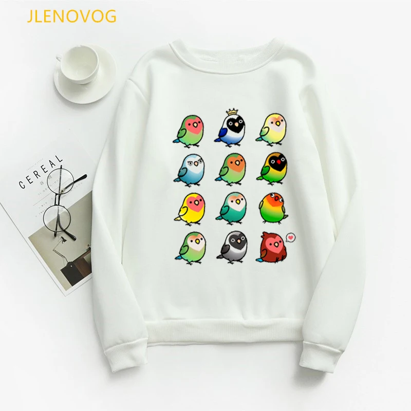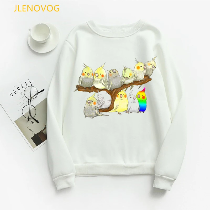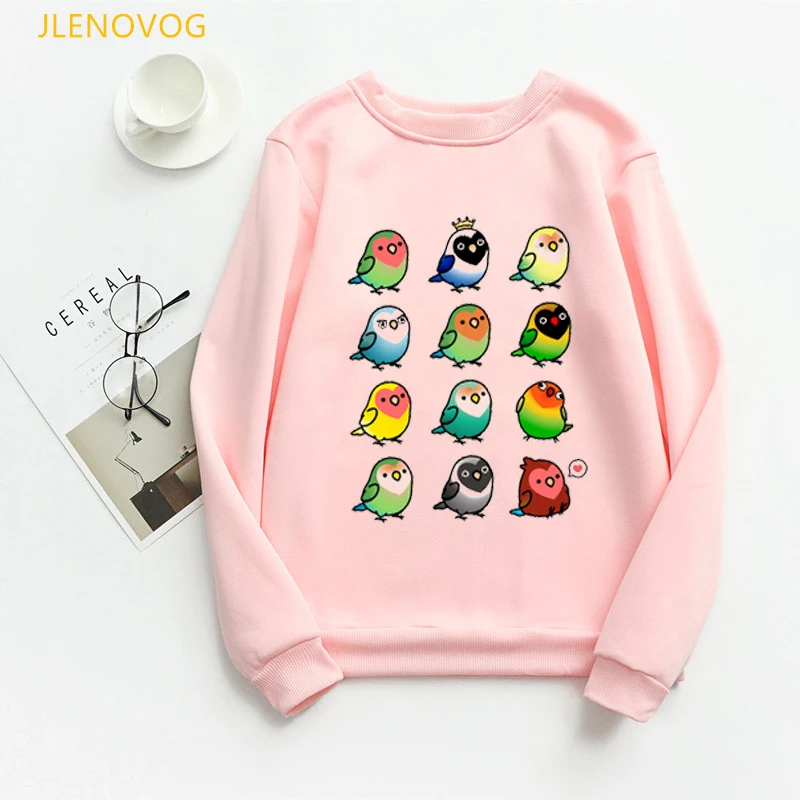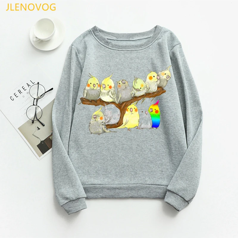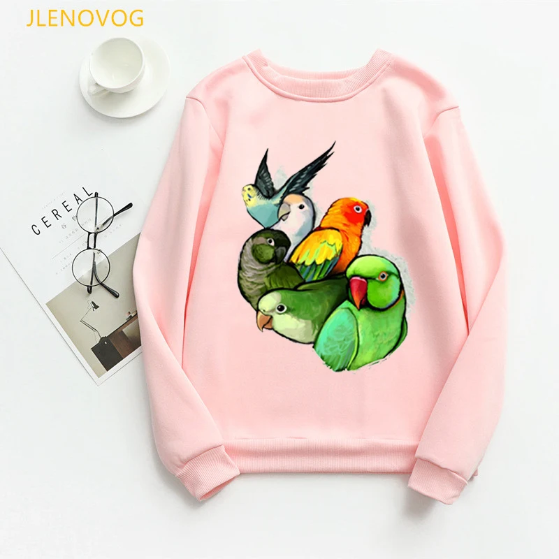 Женская толстовка с Гнездо для попугая принтом, милые худи с рисунком радужных птиц, зимняя уличная одежда