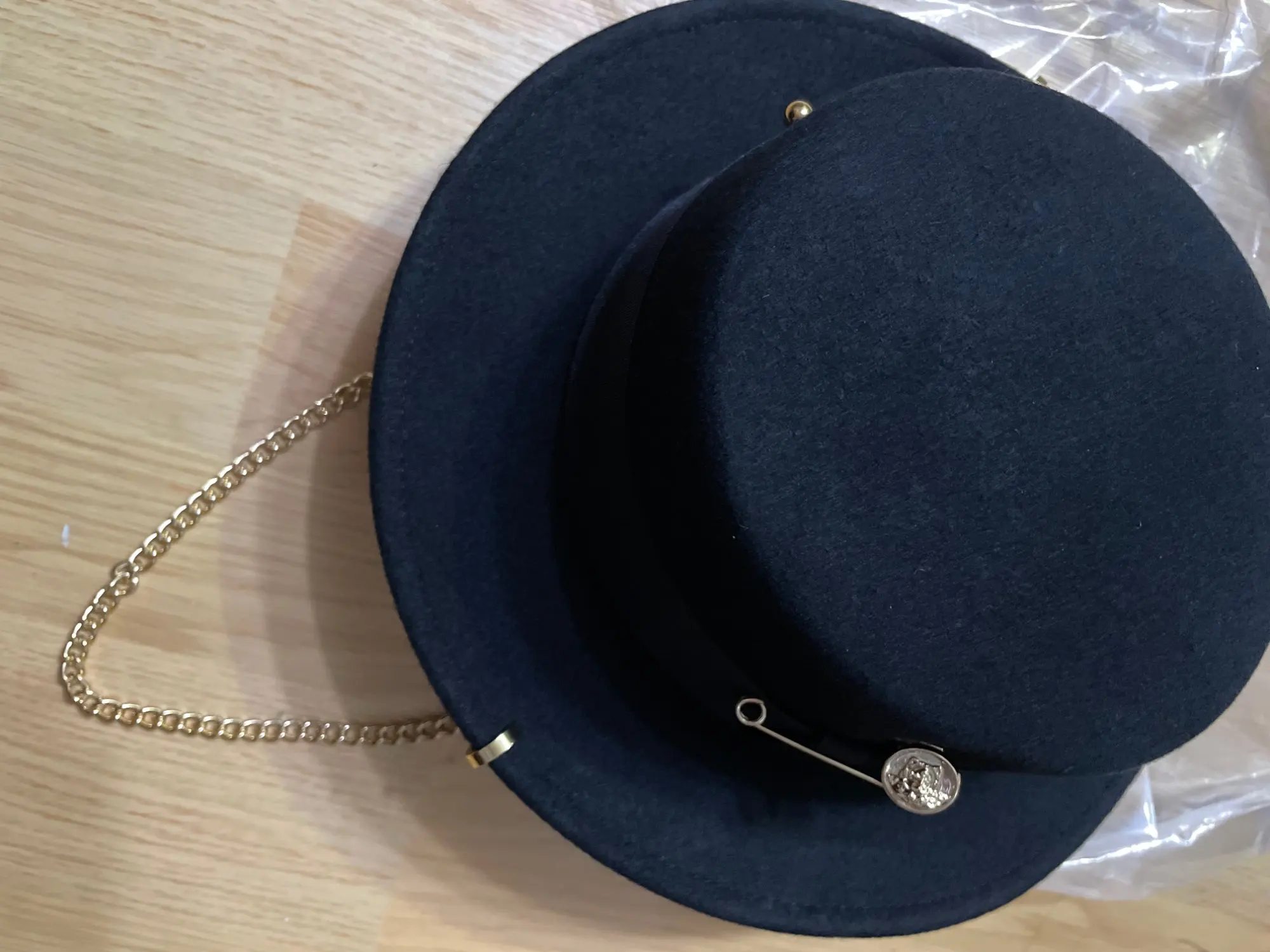 Шляпа просто идеальная. И это тот случай, когда отделка внутри ещё круче, чем снаружи. Фурнитура тоже очень качественная: тяжеленький металл без малейшей зазубринки. Цвет металла выглядит как настоящее золото, без излишней желтизны. Сама шляпа глубокого чёрного цвета из плотного гладкого фетра, 100% шерсть. Роскошная. Это настоящий люкс! Вживую выглядит намного лучше, чем на фото. И что для меня было очень важно - это очень бережная упаковка. Без шансов помяться. Очень рекомендую! Спасибо продавцу за качественный товар!