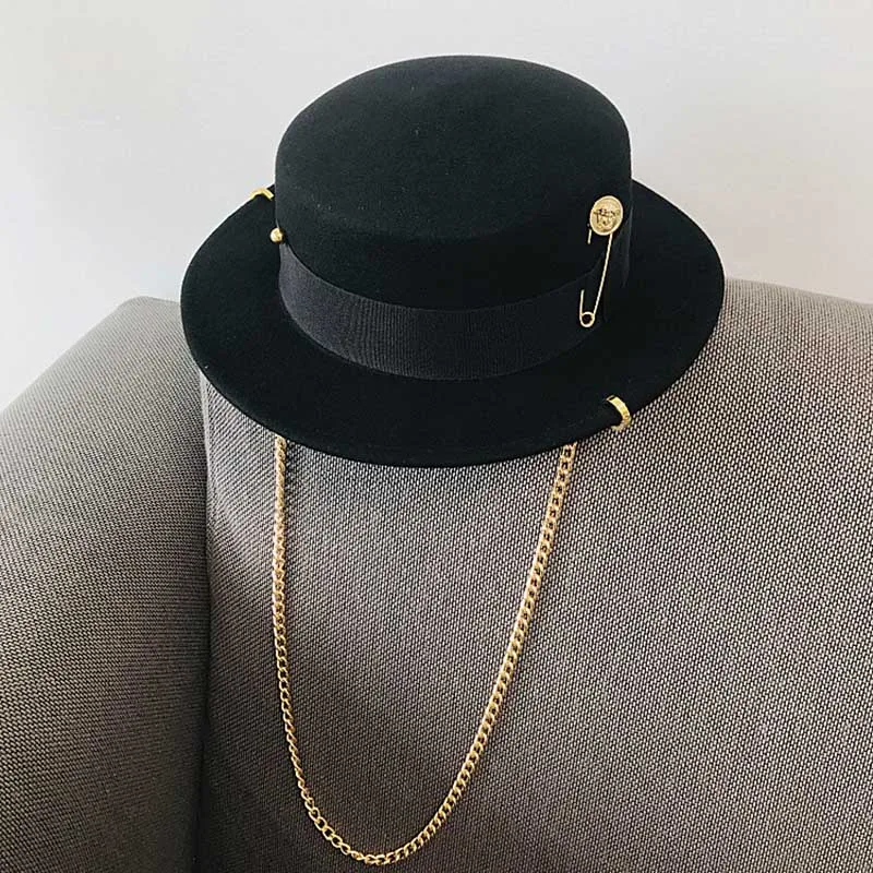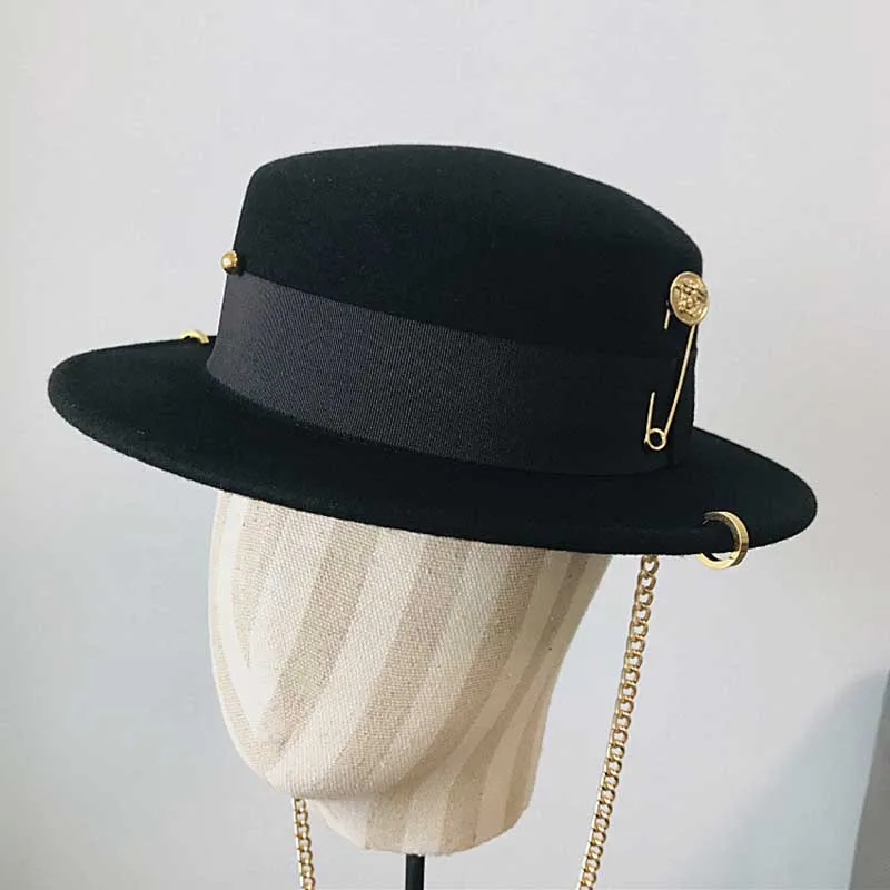 Женская фетровая шляпа Fibonacci, шерстяная шляпа в стиле ретро, с цепочкой в стиле панк, 2020