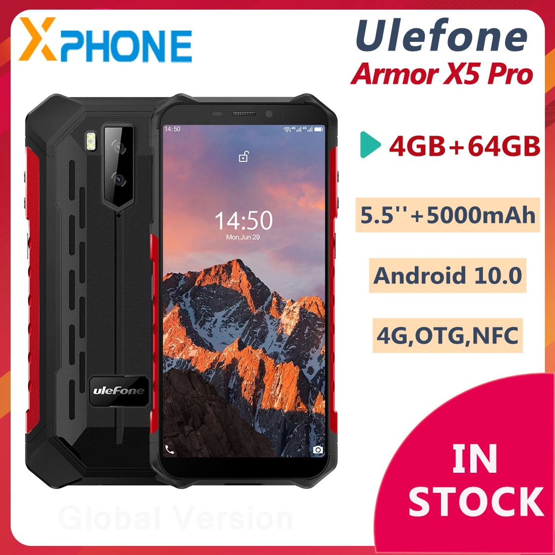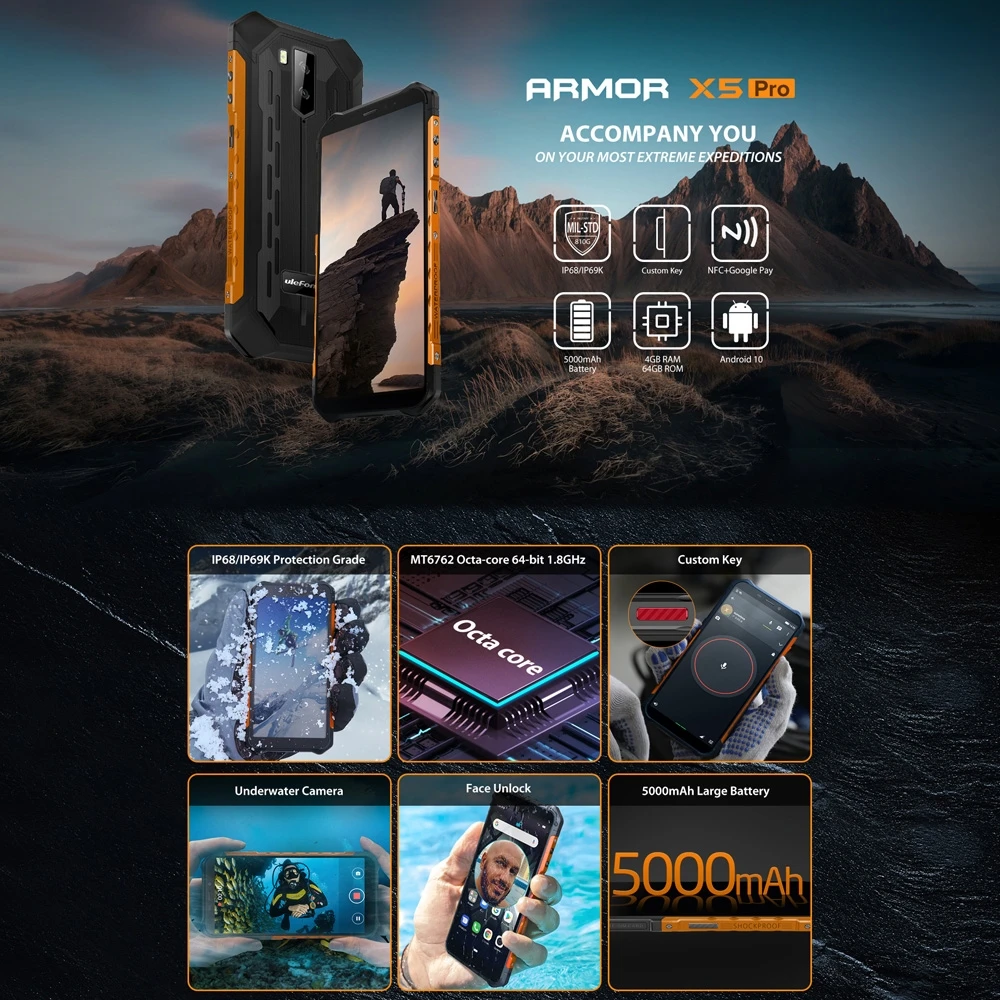 Смартфон Ulefone Armor X5 Pro, 4 + 64 ГБ, 5000 мАч, 5,5 дюйма, Android 10,0, 4G