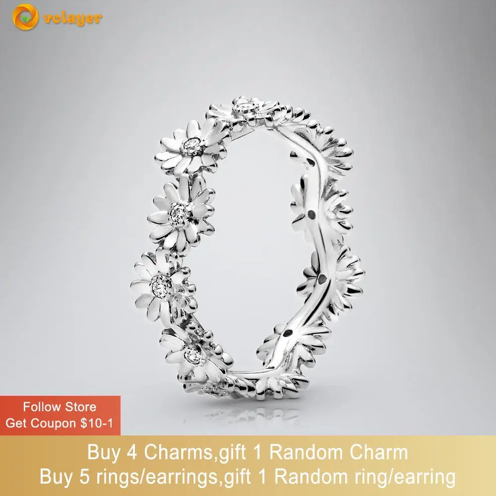 2020 сверкающие Ромашки Цветок Корона кольцо из стерлингового сереб...
