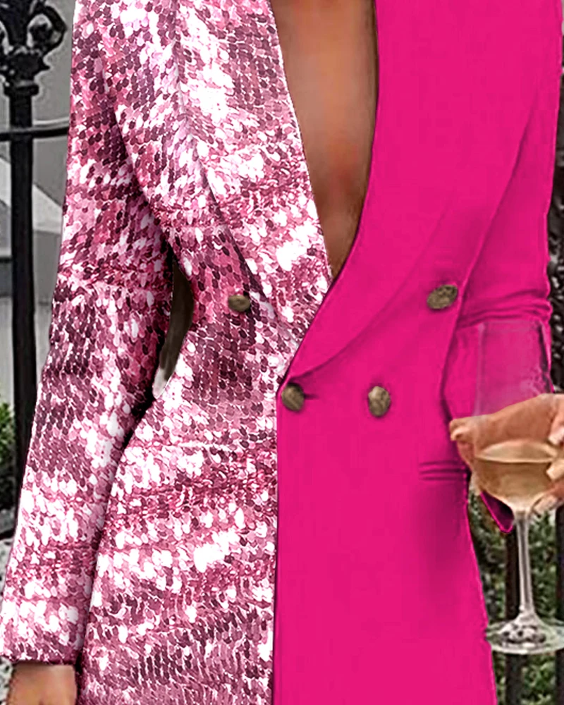 Женское офисное платье с блестками, двубортное платье-блейзер с длинными рукавами и V-образным вырезом, 2020