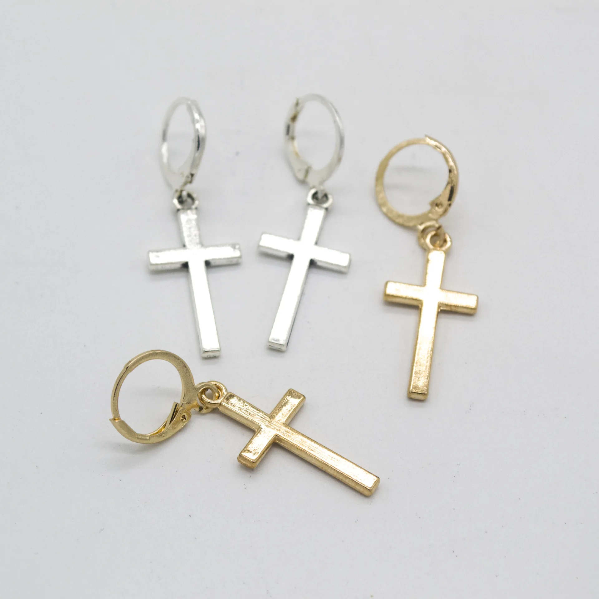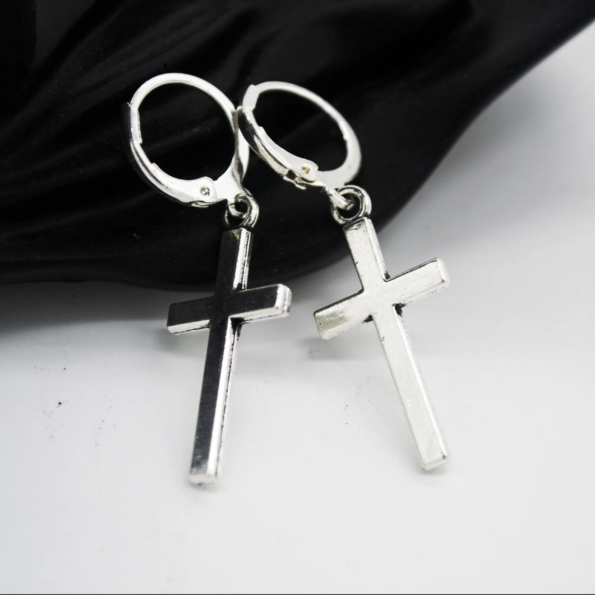 Серьги-гвоздики в стиле панк для мужчин и женщин, металлические висячие серьги-кольца с крестом, Длинные украшения для вечеринок, 2021