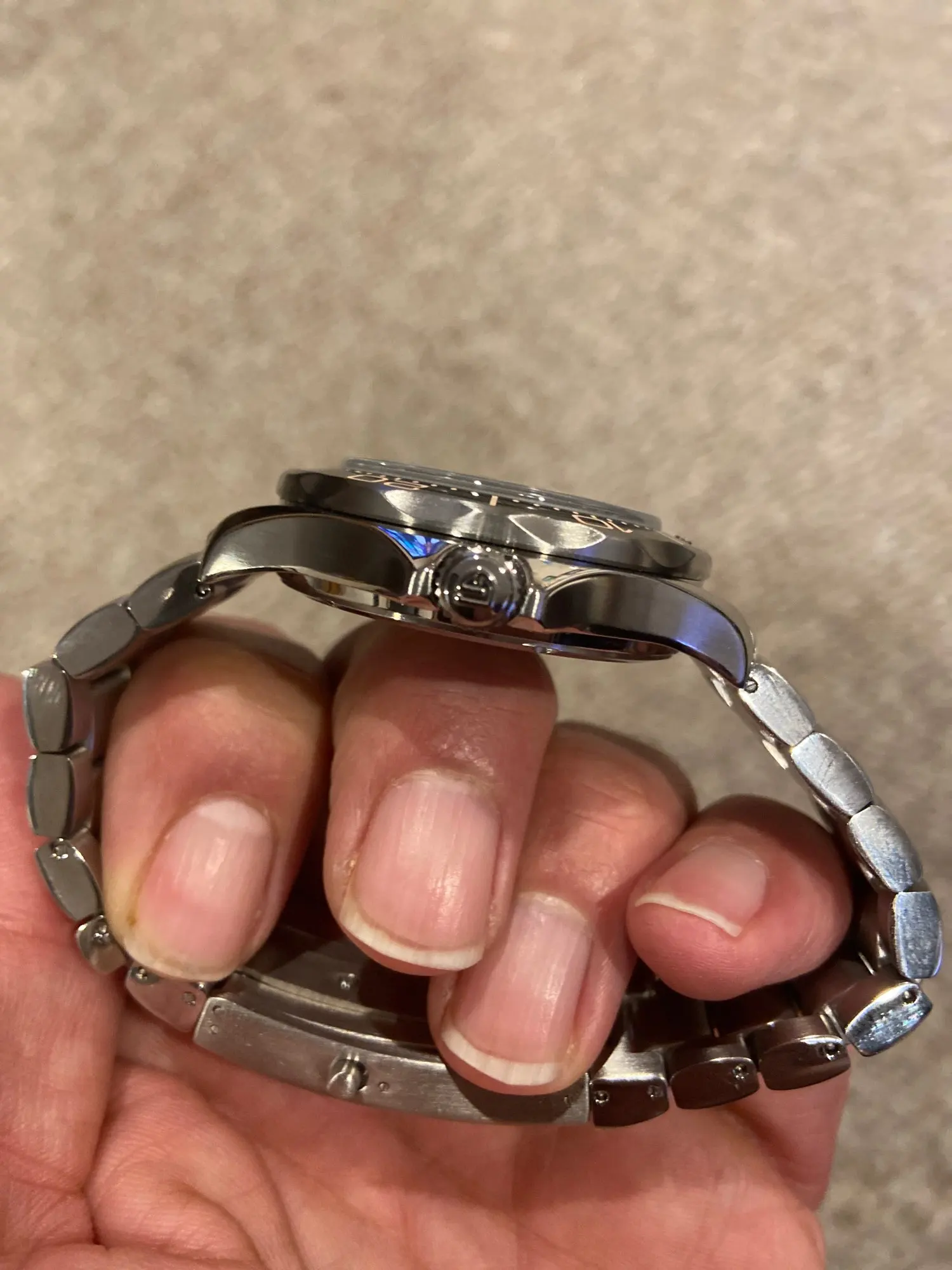 Удивительные часы. Никаких проблем. Очень хорошо носит на моем запястье, только одна ссылка требует снятия, и это удобно. 5/5