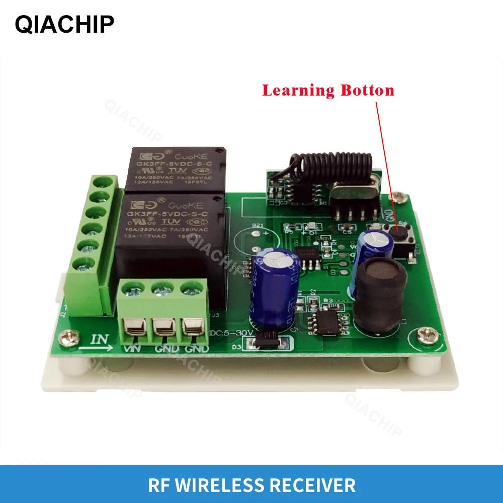 Нажмите кнопку обучения на приемнике один раз, он приходит в мгновенный режим настройки.Подождите немного, светодиодный индикатор выключится, он войдет в состояние обучения.Нажмите кнопку дистанционного управления, светодиодный индикатор на плате приемника будет мигать, а затем выключается.Через 3 секунды светодиодный индикатор будет включаться снова и успешно учится.