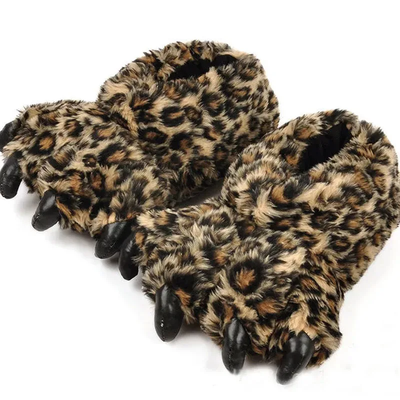 Тапочки домашние женские, унисекс, черные, с мехом, размер 35-43, обувь-лапы