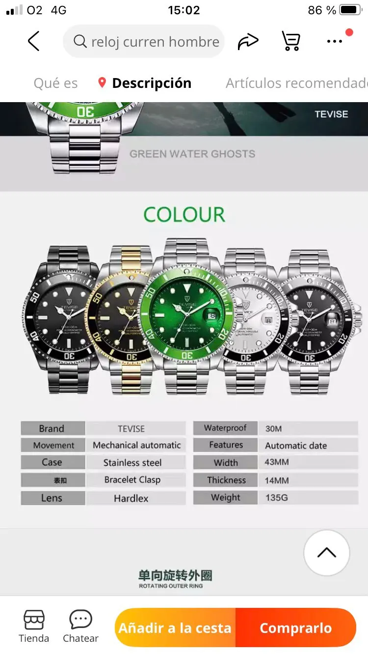 Продавец обманул меня. Он объявил, что у часов была Автоматическая механизм движения, и это Бордо кварцевого движения на батарейках. Очень дорогие часы, чтобы быть кварцем. Другие продавцы имеют ту же самую дешевую. Aliexpress позволяет продавцу обмануть своих клиентов и намерен соответствовать мне частичный возврат. Остерегайтесь этого продавца. Я не рекомендую это вообще.
