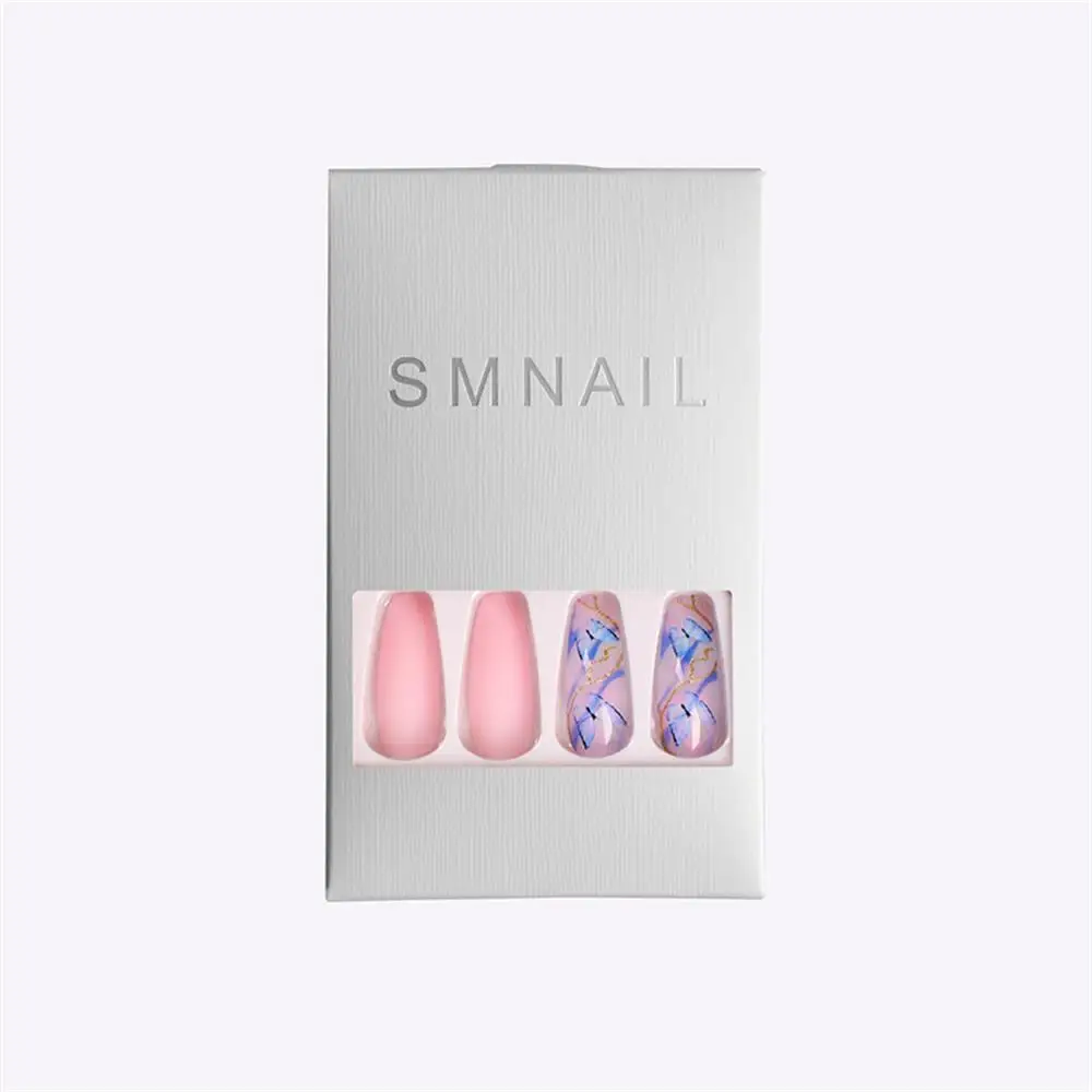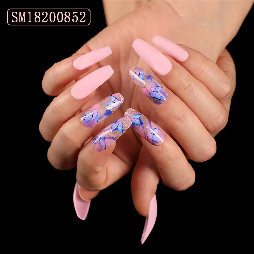 24 шт.коркор. Длинные акриловые накладные ногти розового цвета с по...