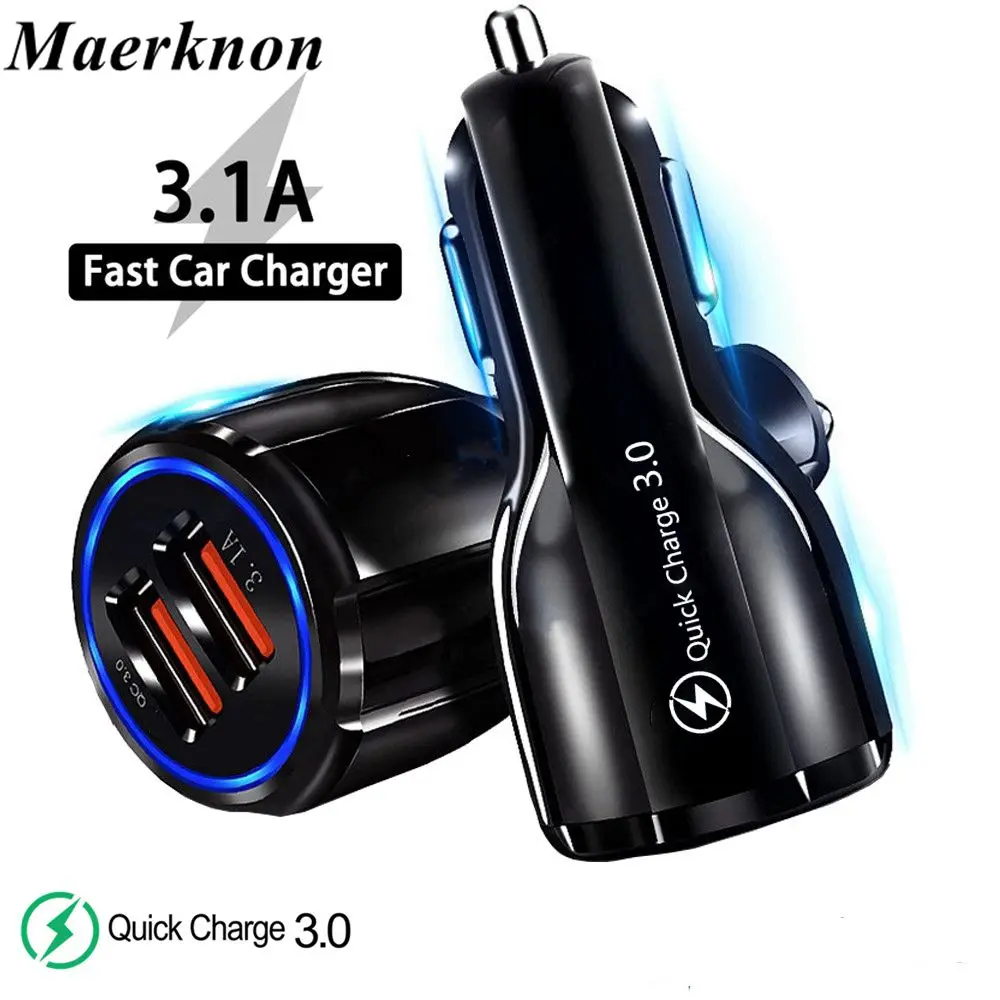 Автомобильное зарядное устройство Quick Charge 3,0 с двумя usb-портами для iPhone 11 xr Samsung Xiaomi mi9, универсальное автомобильное зарядное устройство QC 3,0, быстрое зарядное устройство