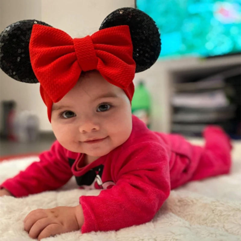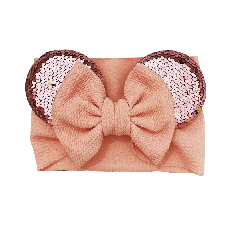 Блестящая повязка на голову с бантиком для младенца с большим бантом, эластичная детская лента для волос, однотонный тюрбан, аксессуары для волос для маленьких девочек