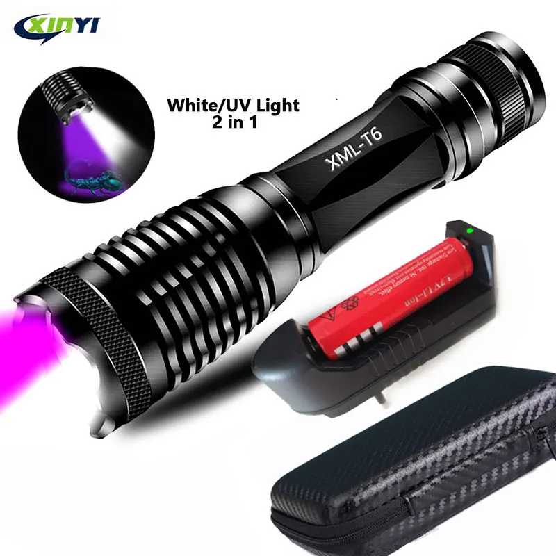 УФ-вспысветильник 2 в 1, светодиодная тактическая вспышка, ручная вспышка фонарик черного света светильник Ультрафиолетовый детектор мочи для точечного ковра, мочи домашних животных, улавливания пятен скорпионов, кемпинга, походов, рыбалки, бега УФ/обычный фонарик Может использоваться как черный светильник или обычный белый свет УФ-фонарик, хорошо изготовленный из высококачественного алюминиевого сплава, делает его прочным, долговечным и долговечным. 2 в 1 ультрафиолетовая тактическая вспышка с 5 режимами светильник Ультрафиолетовая черсветильник вспышка 2 в 1, специальная конструкция с УФ-лучом и белым лучом света, позволяет обнаруживать мочу и пятна собак, кошек и других домашних животных на коврах, ковриках, одежде, мебель, полы и многое другое. С дизайном Zoom IN/OUT: Регулировка поля зрения, легче обнаруживать пятна от мочи на ковре домашних животных, скорпионов, аутентификацию валюты, водительские права, официальные удостоверения личности, паспорта. Более удобно, его можно заменить на белый фонарик, whch полезен для охоты в помещении и на открытом воздухе, кемпинга, походов, охоты и барбекю. Фонарик включает в себя 5 режимов освещения: Полная яркость, низкая яркость, стробоскоп, Полный УФ и низкий УФ-режим. Вы можете изменить режим освещения через полуглубокую нижнюю кнопку в соответствии с вашими требованиями. Обычный белый светильник вспышки: Широкое использованиеЛегко носить с собой как запасной, он достаточно маленький, чтобы поместиться в карман, сумочку, ящик или автомобильное отделение. Требуется 3 стандарта AAA или одна 18650 перезаряжаемая. Идеально подходит для кемпинга, походов, рыбалки, бега, выгула собак, отключения питания и общего домашнего использования. УФ-фонарик: 395 нм ПРИМЕНЕНИЕ УФ-фонарика: УФ-Вспышка черный светильник идеально подходит для выявления сухих пятен от собак и грызунов, а также неблагоприятных пятен, которые не видны невооруженным глазом. Легко определять скорпионов, аутентифицировать валюту, водительские права, официальные удостоверения личности, паспорта. Водонепроницаемость: противоскользящая, водонепроницаемая, верхняя часть explosion-proof.Lotus защищает объектив, управляет технологией резки, нескользящая и водонепроницаемая с ромбами. Водонепроницаемость от брызг воды. Идеально подходит для использования в дождь, снег или в чрезвычайных ситуациях. Регулируемый фокус: масштабирование/уменьшение Белый фонарик: макс. 5000 лм Материал: авиационный алюминий. Водонепроницаемый IPX5 Защита от падения 1 метр Питание от аккумулятора: 1*18650/3 * AAA батарея. Напоминание: Пожалуйста, не светите жёсткий луч света прямо в глаза, особенно детям!