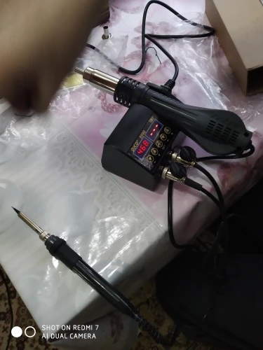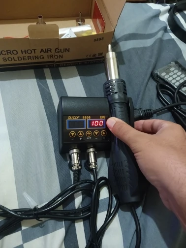 Оплатил 22.01.21 получил 11.02.21 из Китая. Получил прямо к нужной дате. Упаковка в целости и сохранности. Доставка супер. Фото соответствует, поэтому не выкладываю. Комплектность соответствует заказу (с дополнительным нагревательным элементом, как запасной). При укладке фена на ложемент, вентилятор включается на максимальные обороты до снижения температуры до 100 градусов и отключает фен полностью. Взял в руки и снова нагревается до предыдущей температуры в автоматическом режиме. Нагревание быстрое. Насадки на фен устанавливаются в паз и фиксируются проворачиванием до возрастания усилия. Снимаются в обратном порядке. Температура регулируется у фена, у паяльника и обороты на фене. Наконечники у паяльника сменные на АЛИ есть, буду заказывать отдельно. Фен в руках держать удобно, пластик рукоятки не греется. Единственное предложение для производителя - сделать прорезиненные ножки против скольжения. Товаром доволен. Очередную свою мечту осуществил. Рекомендую. Продавцу спасибо.