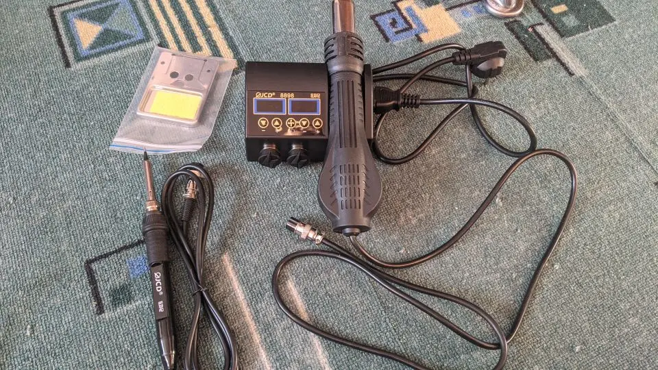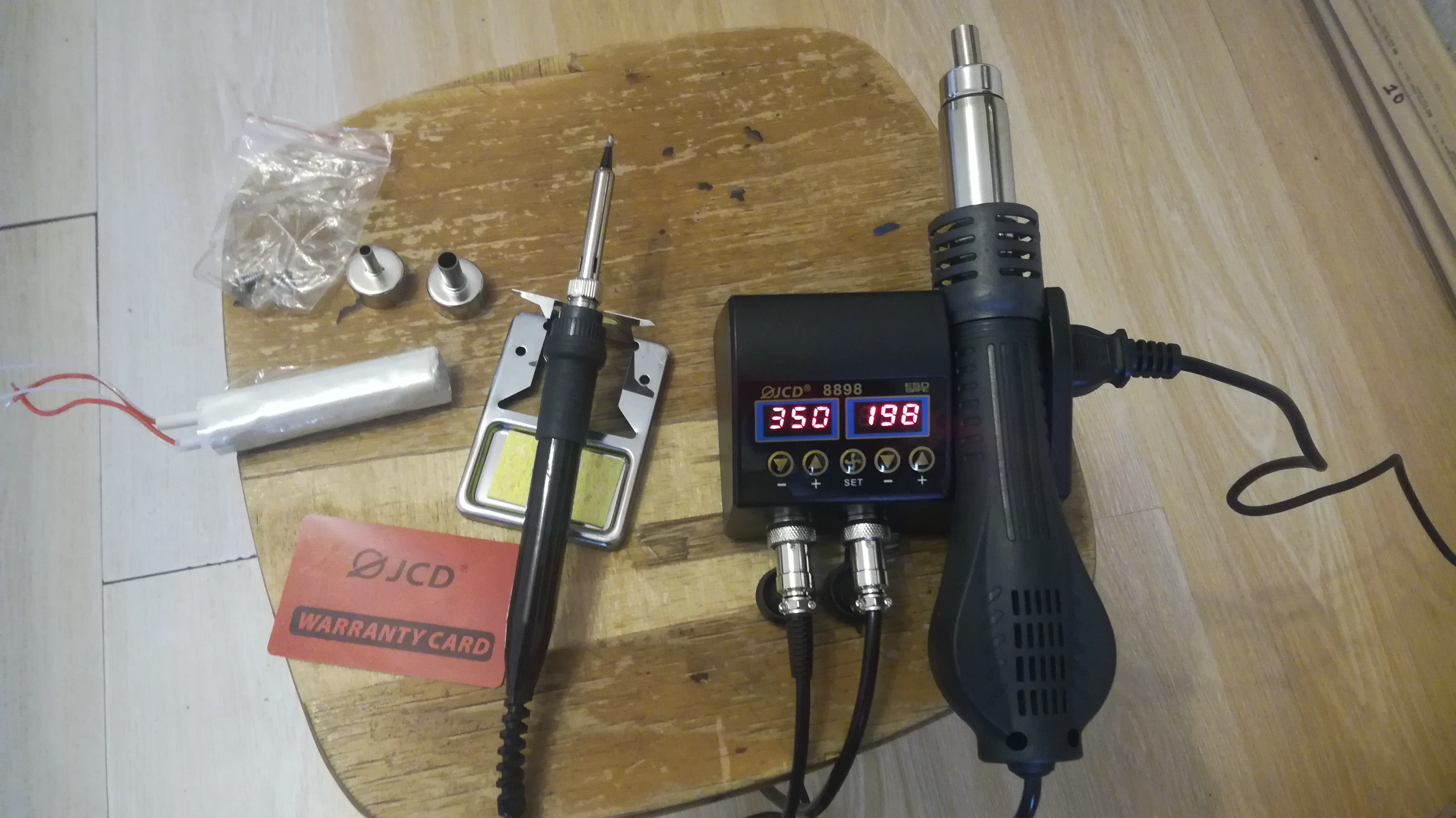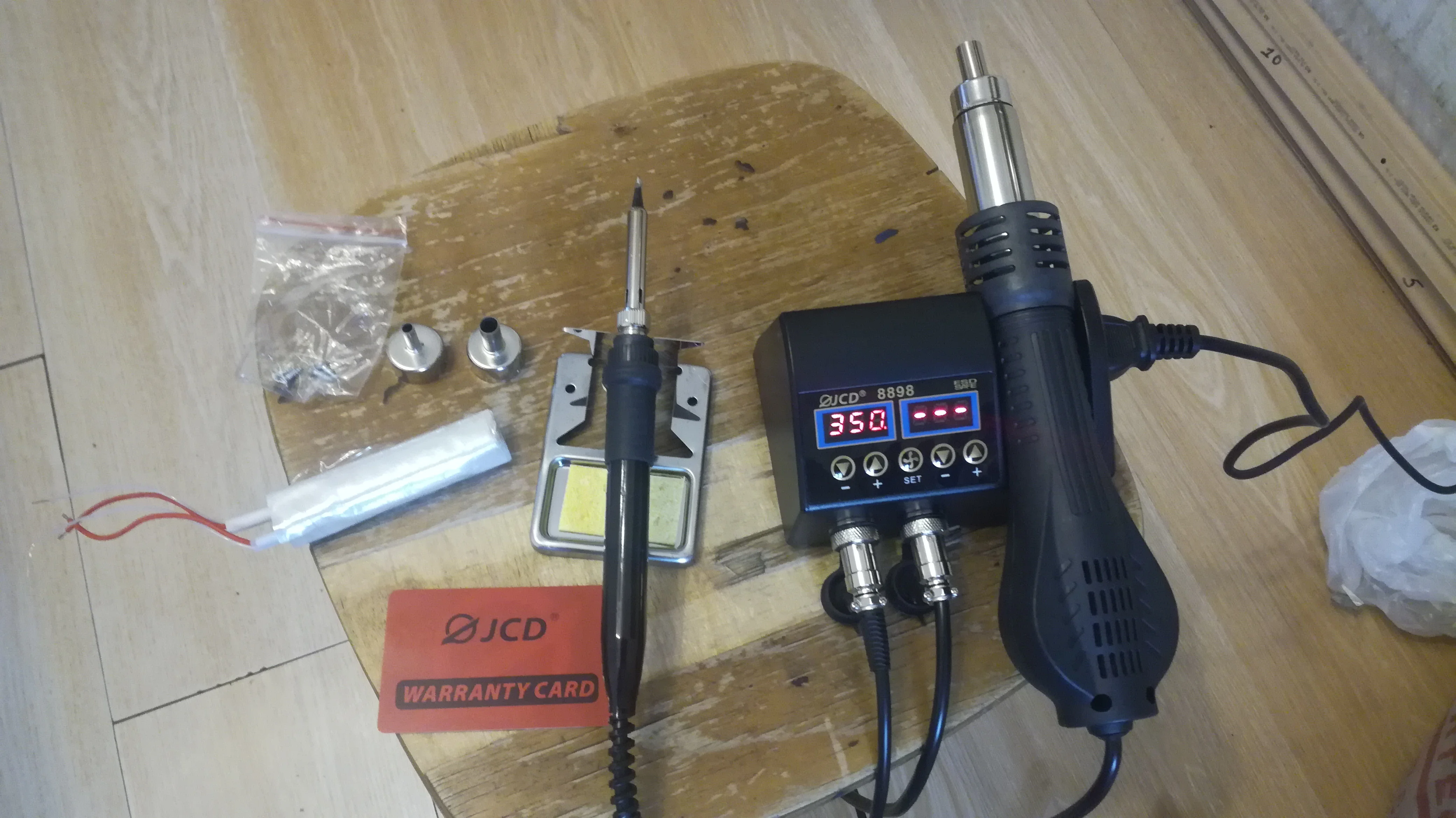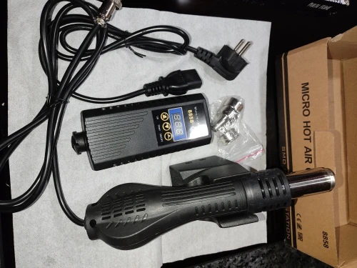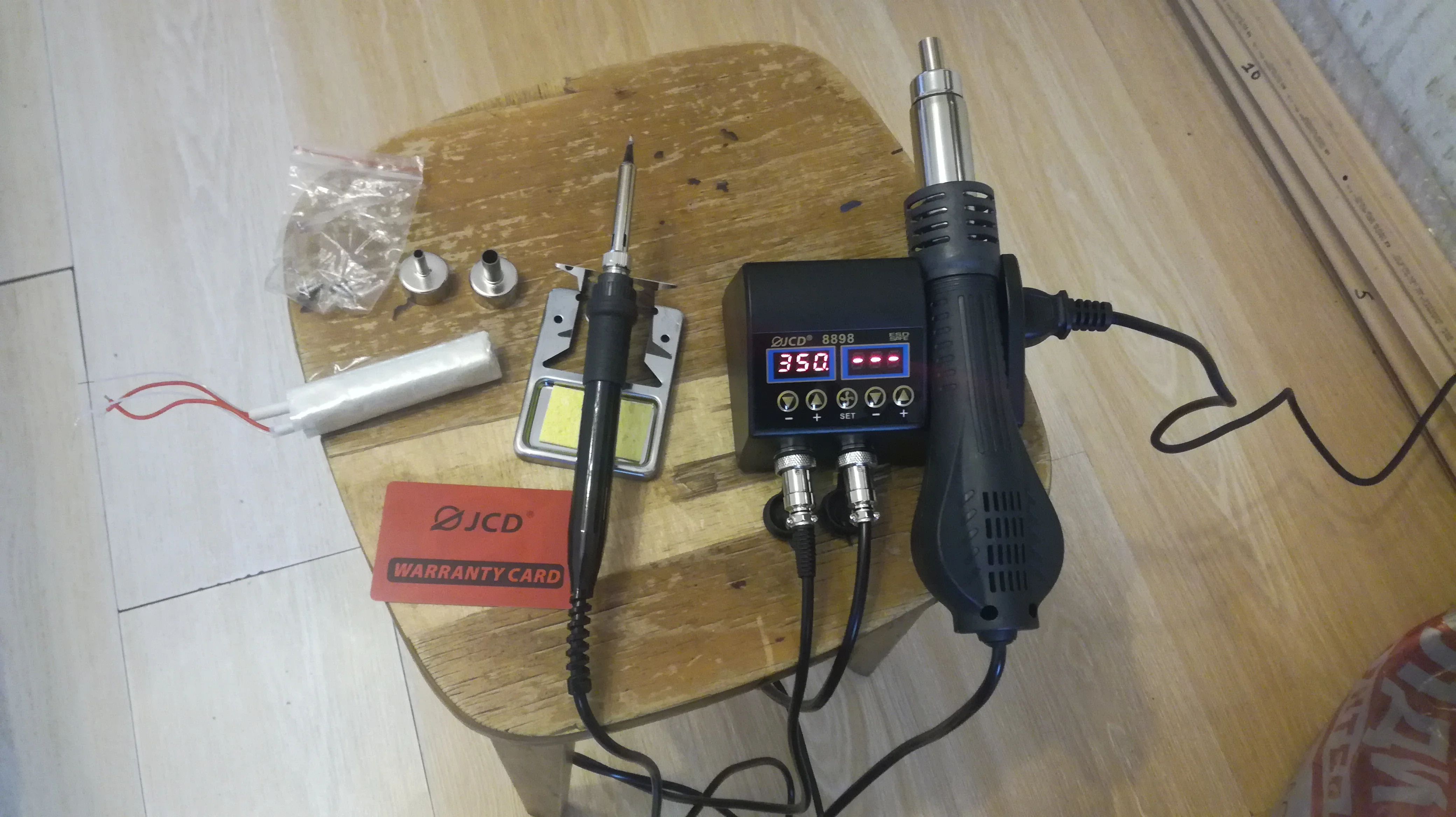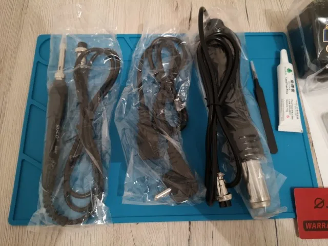 Получил паяльную станцию. Греется быстро, отдельные выключатели для паяльника и фена. По описанию подумал, что придёт несколько насадок для паяльника. Пришла только 1.