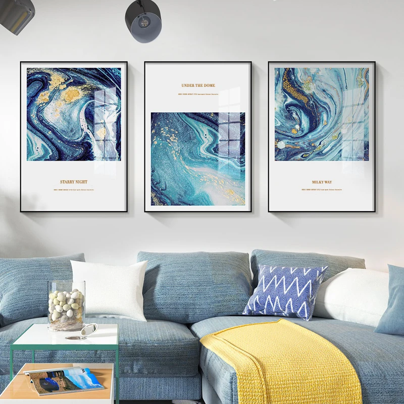 Современные абстрактные золотые фольгированные линии, синий холст, художественные картины для гостиной, плакаты для спальни и принты, настенный постер, домашний декор