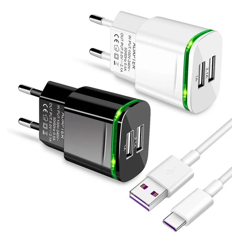 Зарядное устройство с 2 USB-портами и светодиодной подсветкой, зарядный кабель с Micro USB типа C для Redmi 3, 3s, 4, 4A, 5 Plus, 5A, 6A, 7A, 8A, 9A, 9C, Note 4X, 6, 7