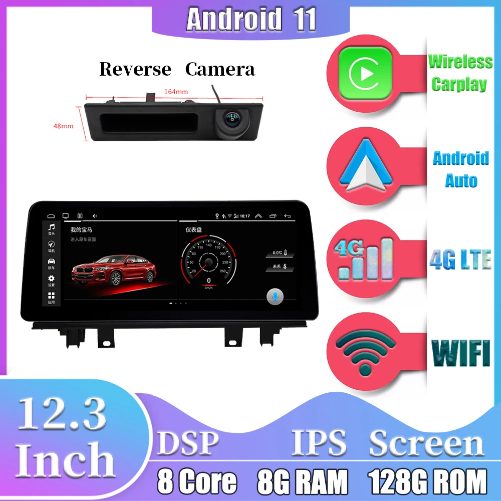Автомобильный мультимедийный плеер, 12,3 дюймов, Android 11, радио для BMW X1 F48 2016 - 2017 NBT 2018 EVO, система Carplay, навигация GPS, Bluetooth