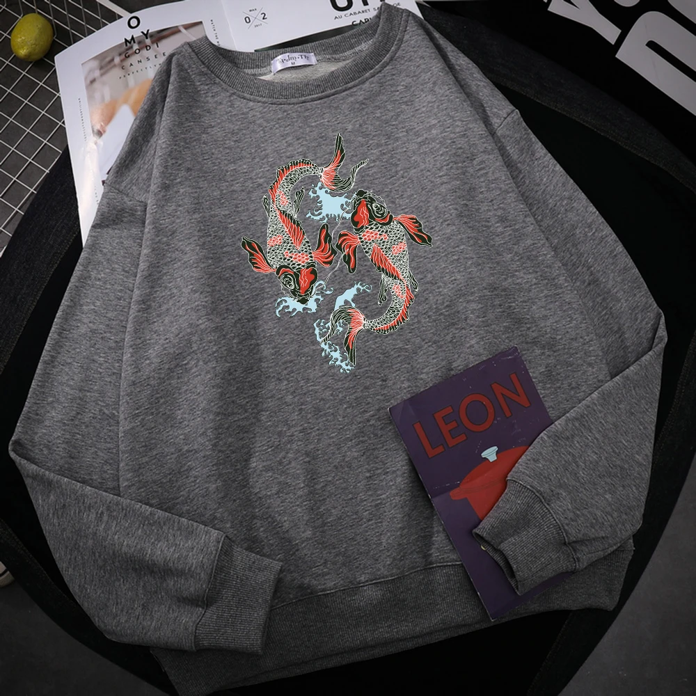 Толстовка с капюшоном в японском стиле с принтом двух Тотем и кои д...