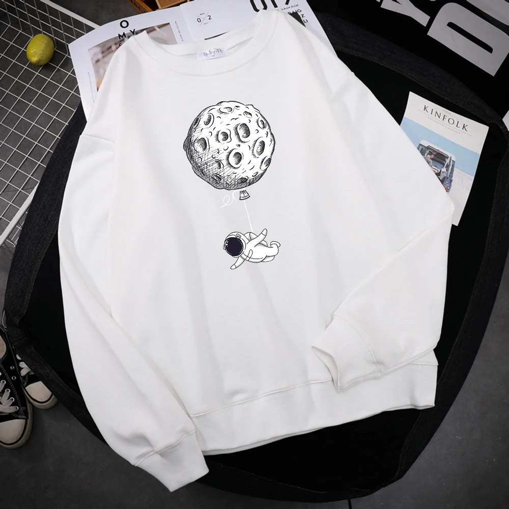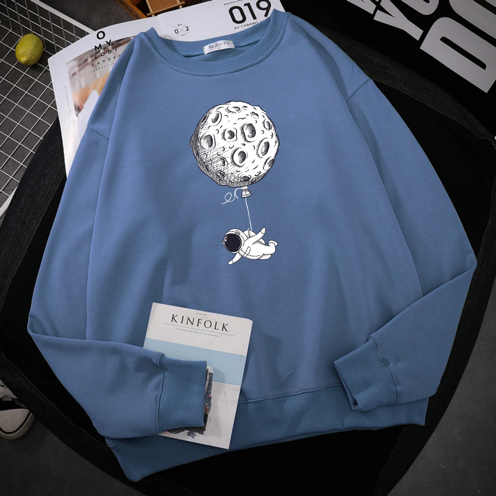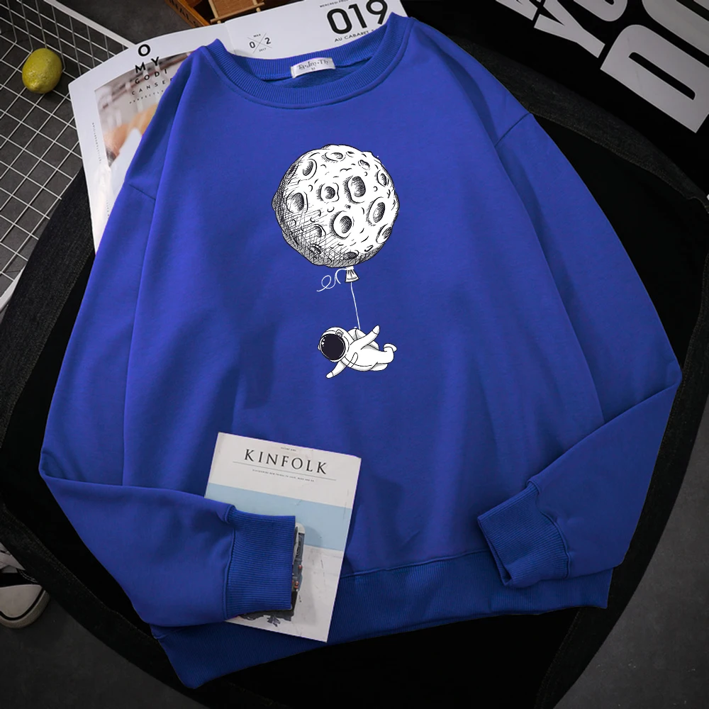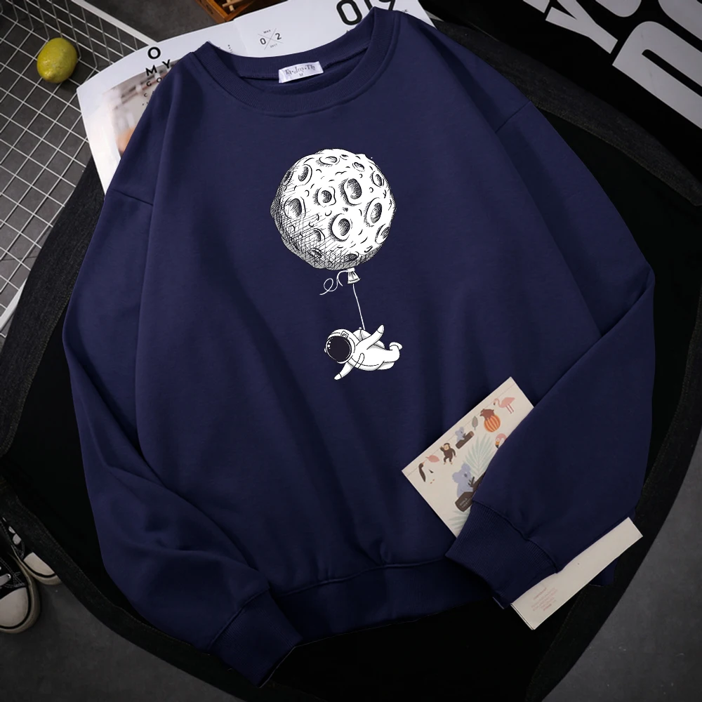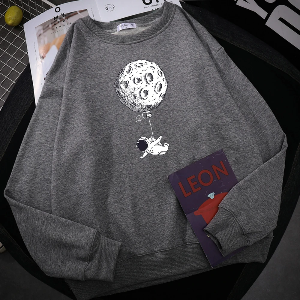 Мужская толстовка с принтом "воздушный шар", Луна, астронавт, флисовая толстовка с круглым вырезом, панк, трендовый свитшот, для мужчин s