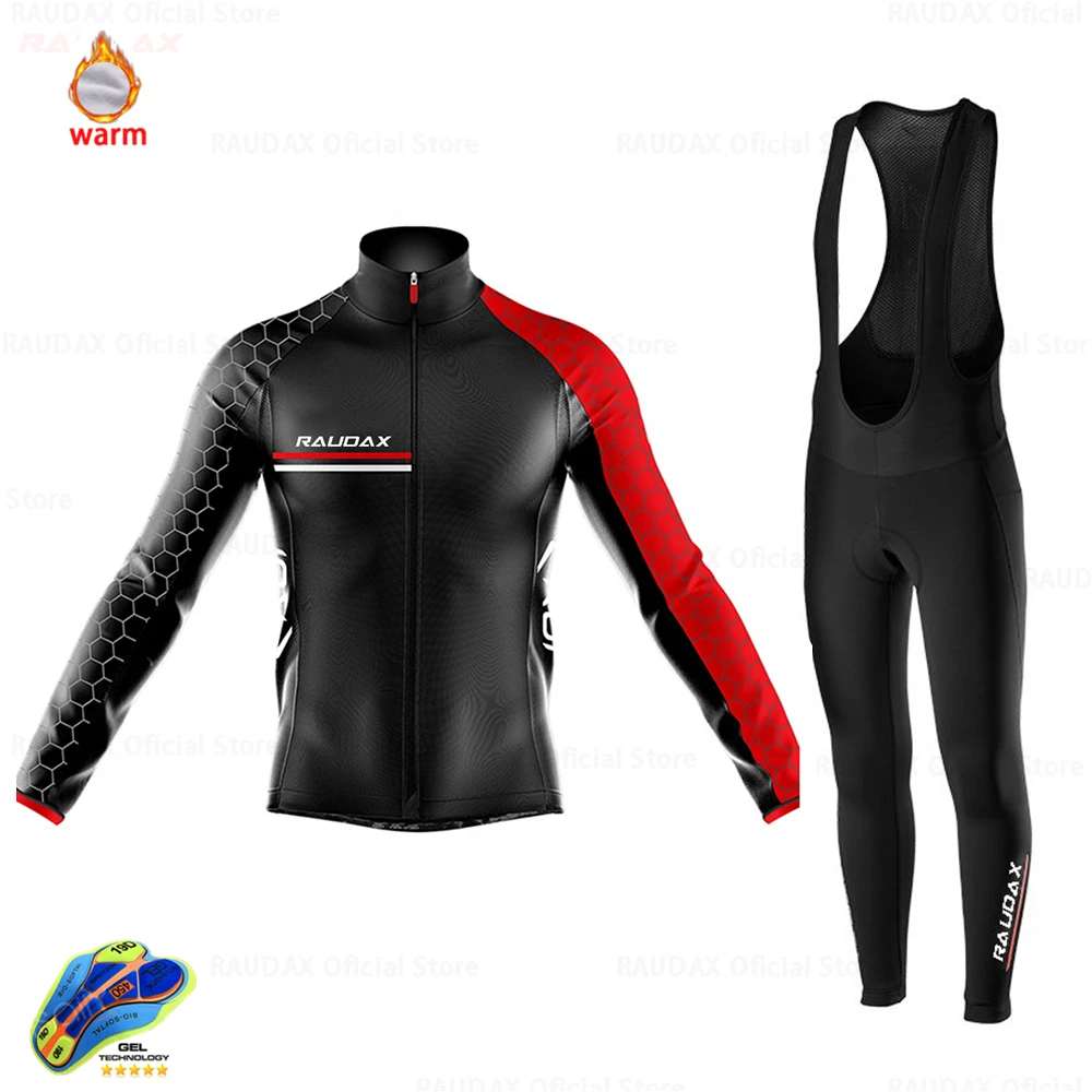Командная одежда для велоспорта Raudax, зимняя флисовая одежда, комплект из Джерси с длинным рукавом, неинформированный термокостюм из флиса, мужская одежда