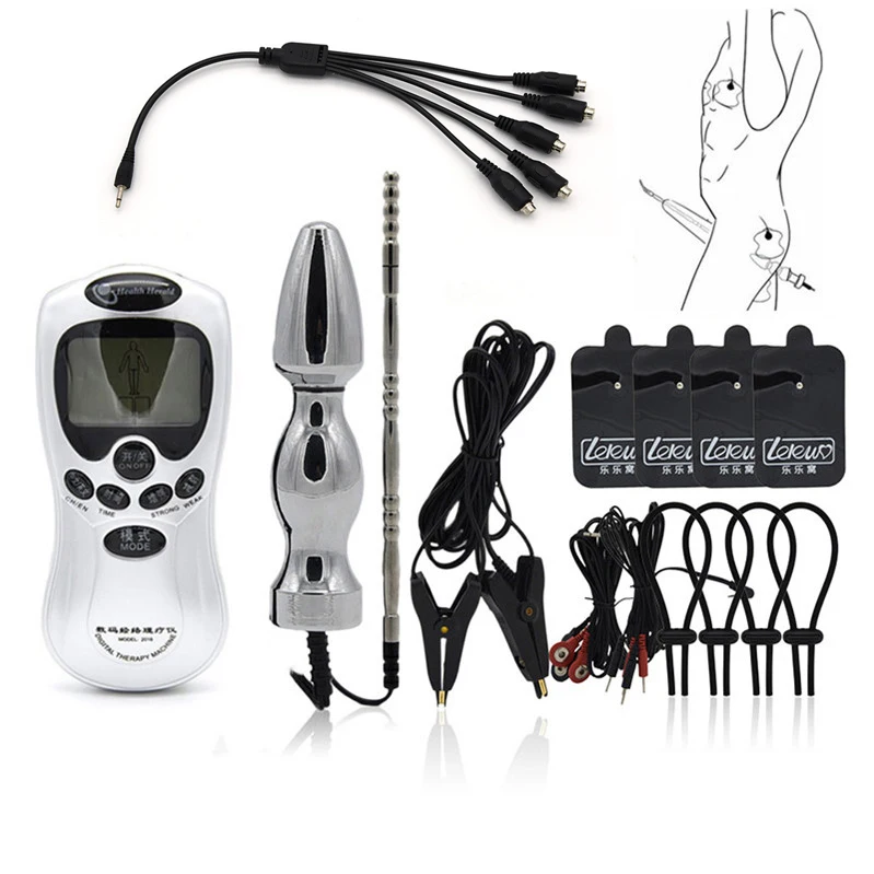 БДСМ сильный Электрический стимулировать секс-игрушки комплект, электро шок Анальная влагалищная пробка мастурбатор пенис вилки петух кольцо для соска зажимы для половых губ