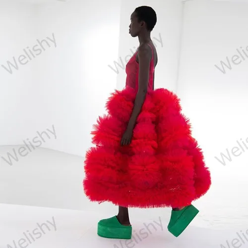 Потрясающая ярко-красная плиссированная юбка А-силуэта из тюля для ...