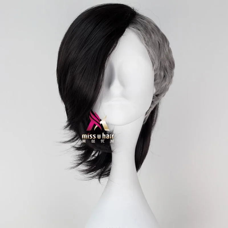 Парик для косплея аниме Токийский Гуль, женский, маскарадный, короткие, черные, серебристо-серые, из аниме Хэллоуин, с шапочкой
