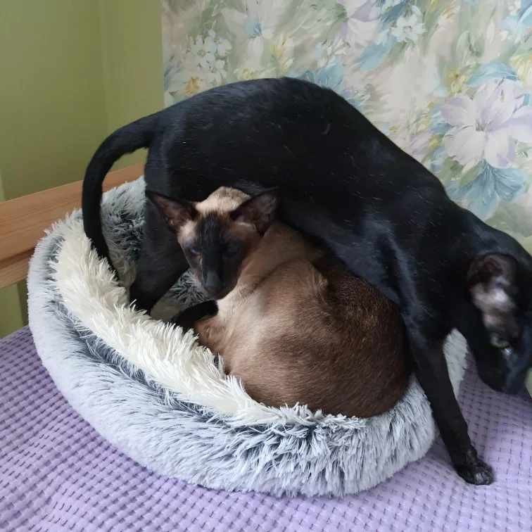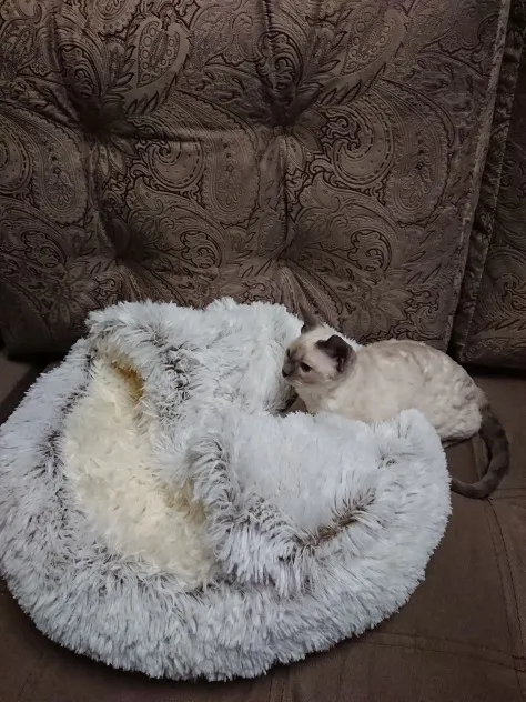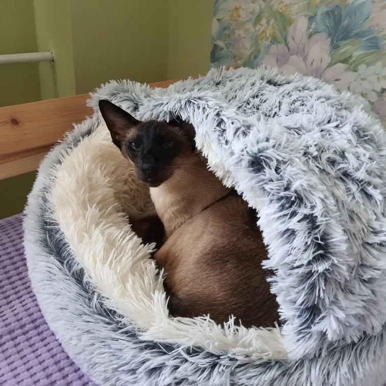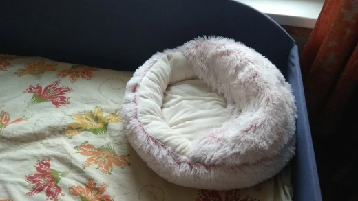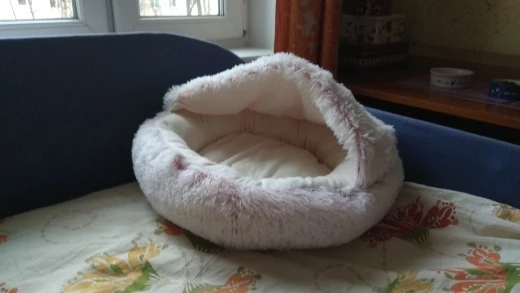 Пришло с браком: дырка между нижней подушкой и стенкой, все внутренние швы наружу, открыла спор часть денег вернули. Не считая этого, место ЗАМЕЧАТЕЛЬНОЕ. Мягкое и тёплое, стирала в машинке на деликатной стирки, подкладка не шуршит(лежит на диване). Кот первый день не решался в него лечь, но после стирки ему очень понравилось. Спит и внутри, и снаружи, и полностью развалившись. Кот весит 4кг, длина тела кота от шеи до хвоста 40см - взяла место 50*50 -отлично подошло. Меньший размер был бы мал.