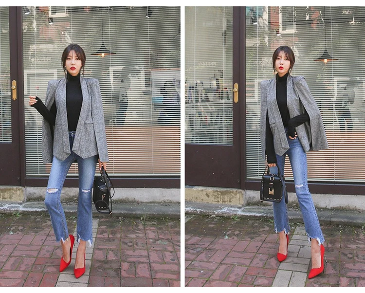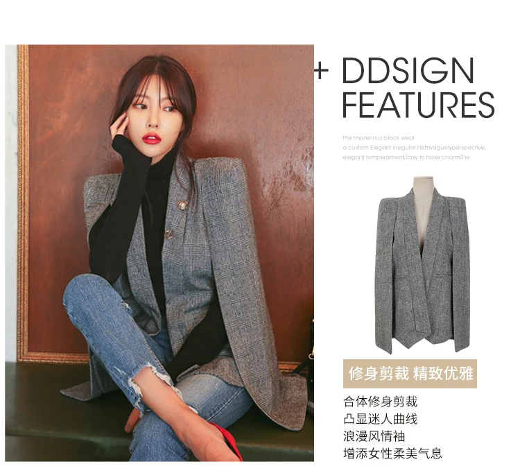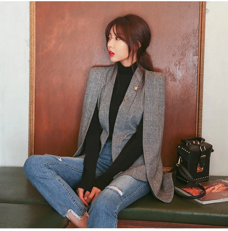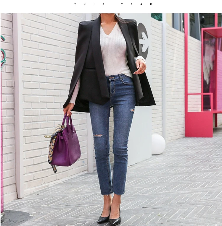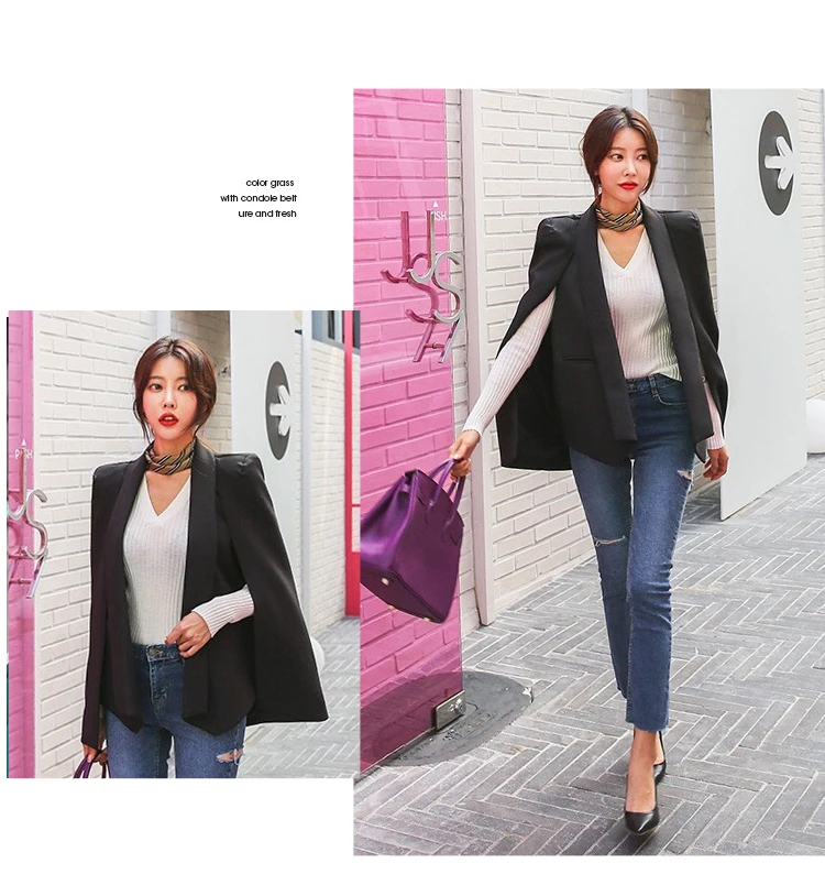 Женский Повседневный пиджак, накидка-пончо с лацканами и длинным рукавом, весна-осень