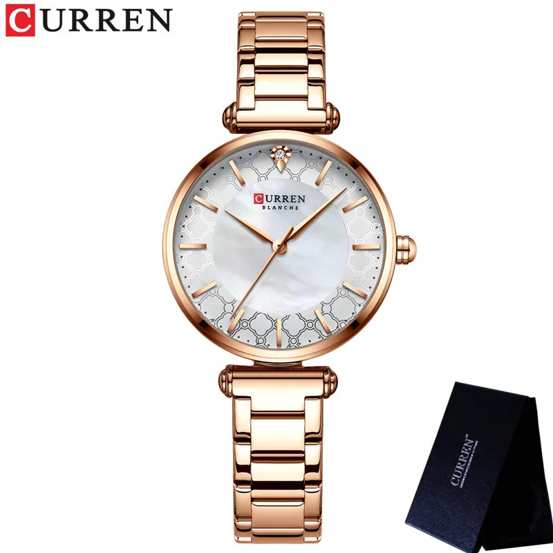 Часы CURREN женские наручные из нержавеющей стали, брендовые Роскошные водонепроницаемые с сетчатым браслетом под розовое золото, подарок, 9072
