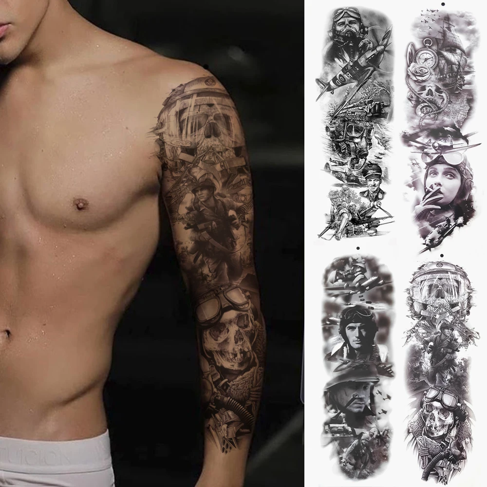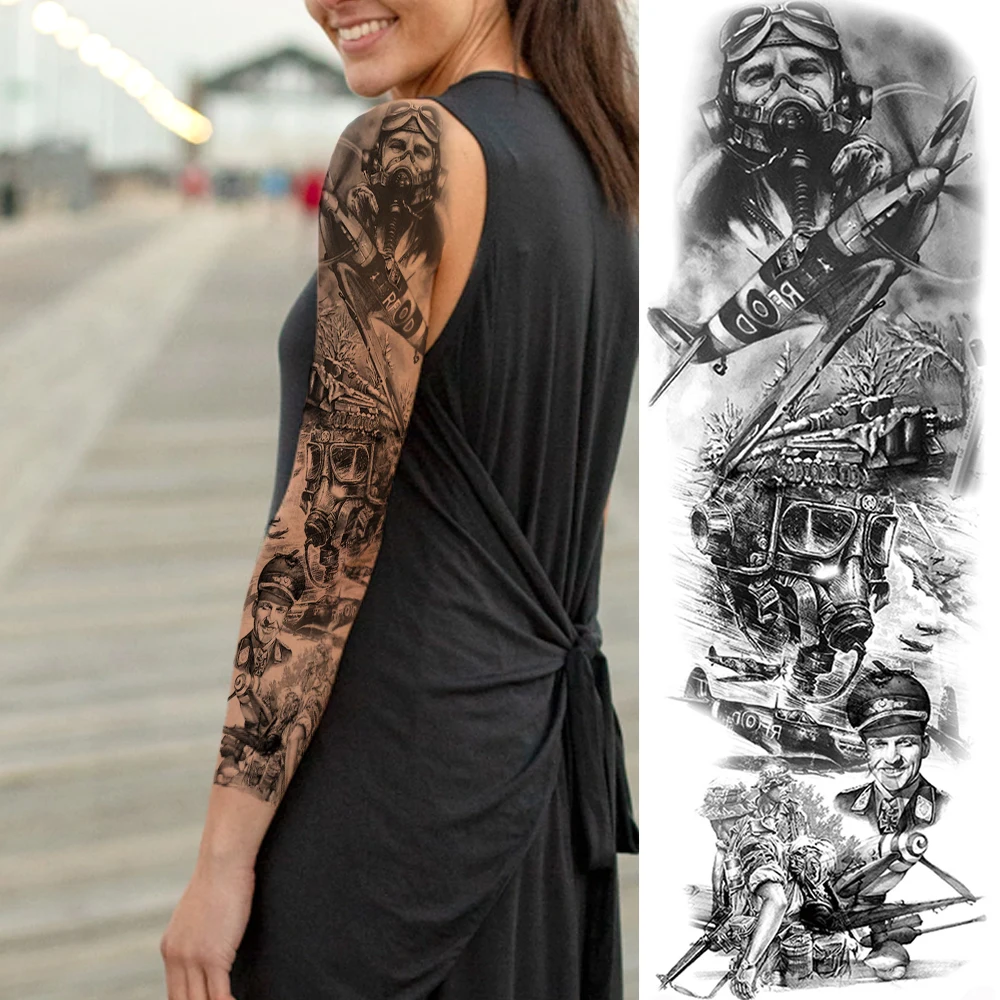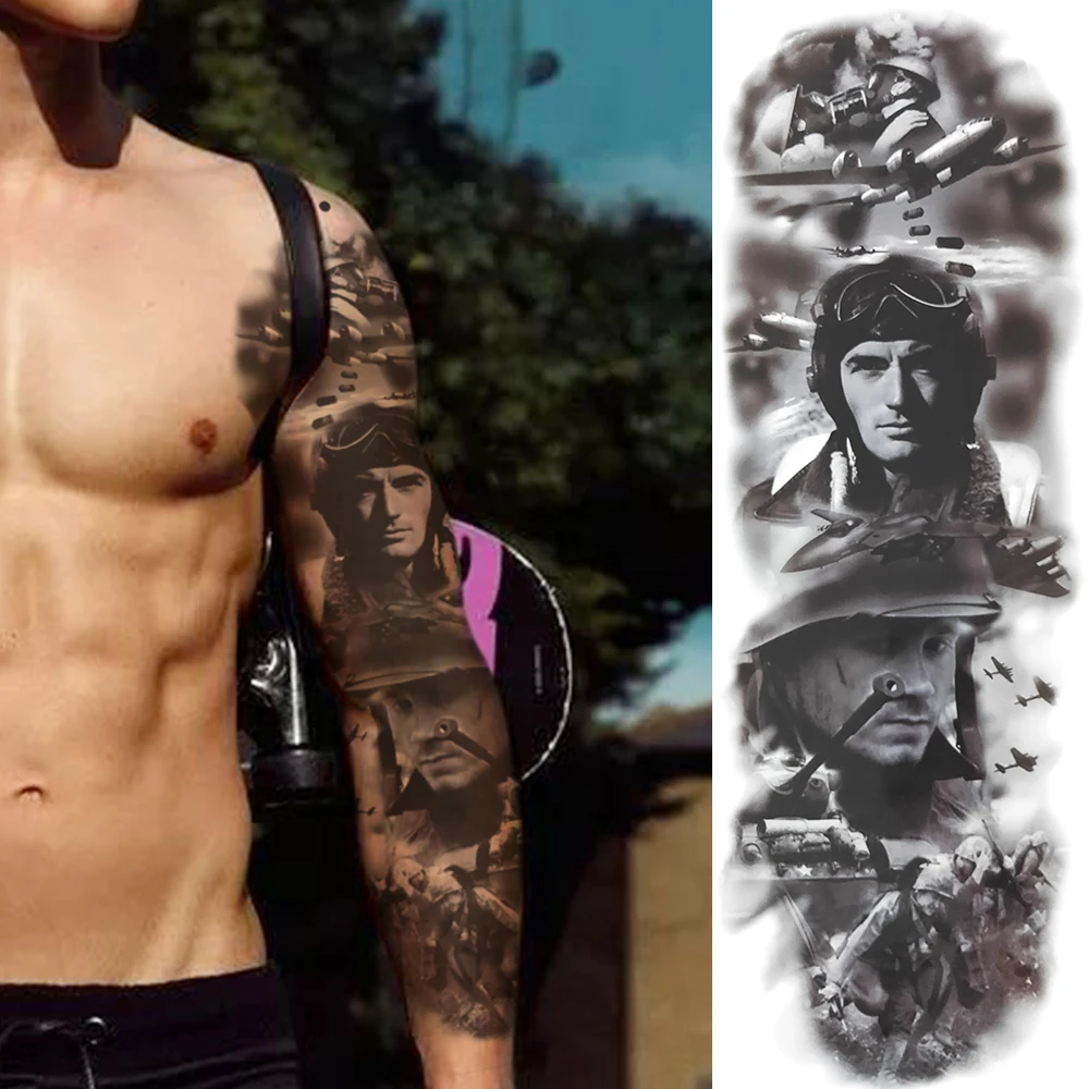 Летающий солдат, Временные татуировки на всю руку, наклейка для мужчин, женщин, мужчин, взрослых, солдат, военный корабль, Compas, поддельные татуировки, рукава, 3D тату, паста