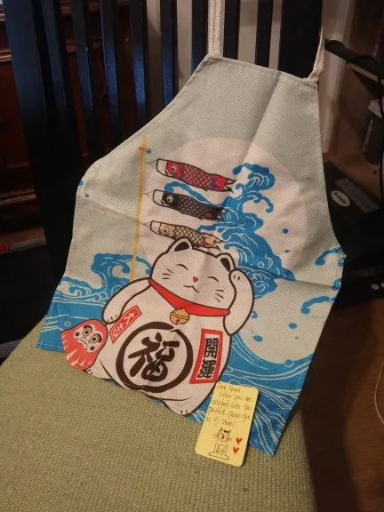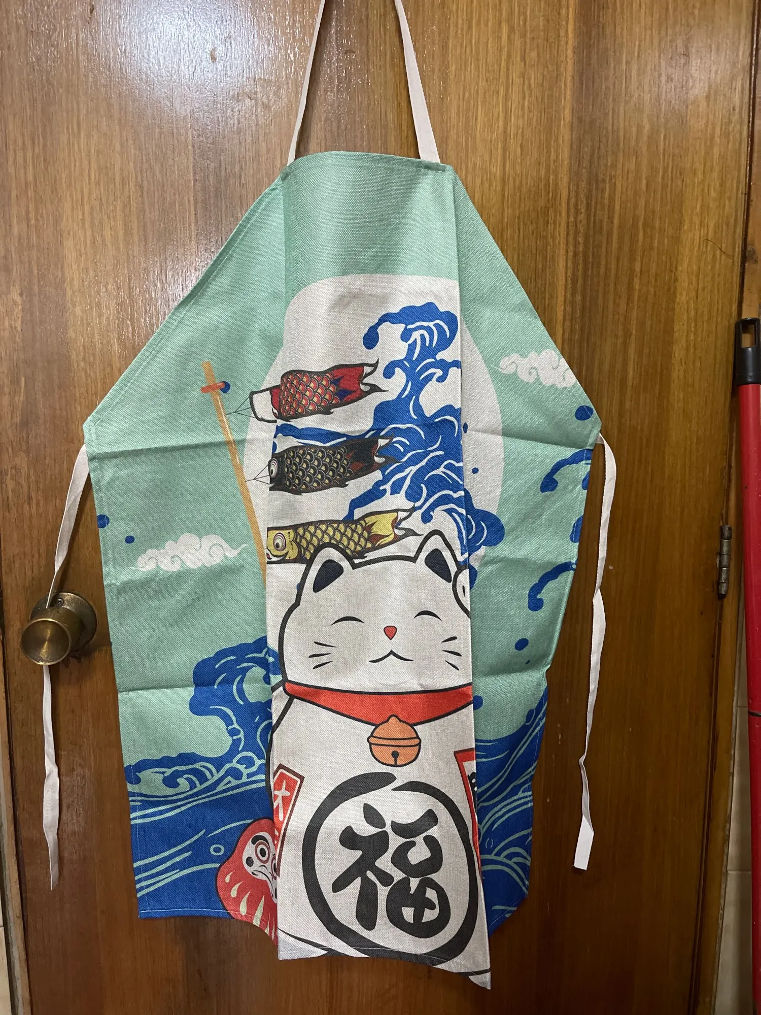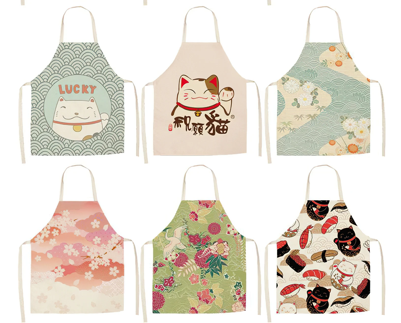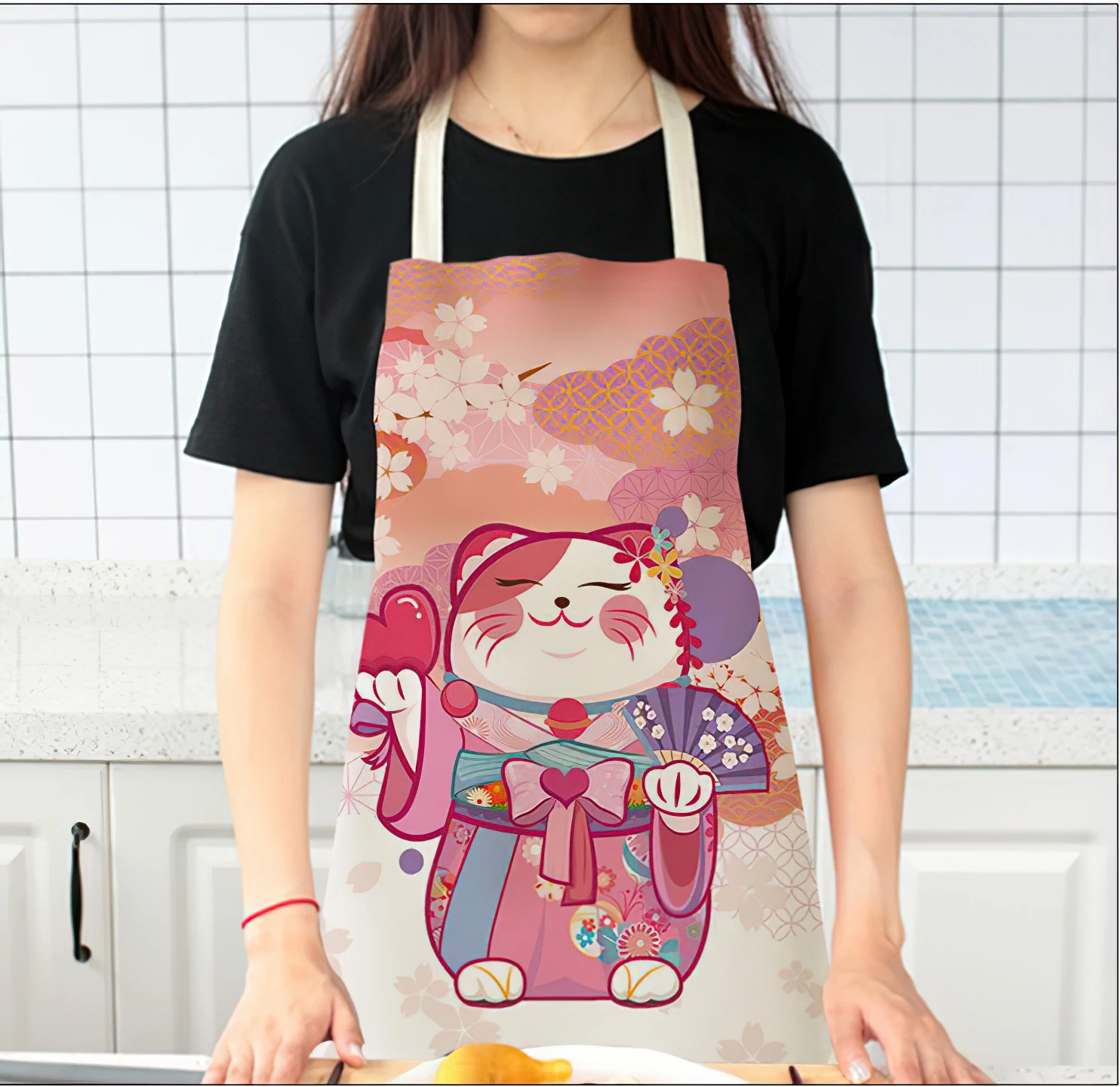 Фартук из хлопка и льна, японский, с изображением из мультфильма Lucky Cat, нагрудник без рукавов для приготовления пищи, водостойкий, нежирный, кухонные принадлежности, фартук шеф-повара