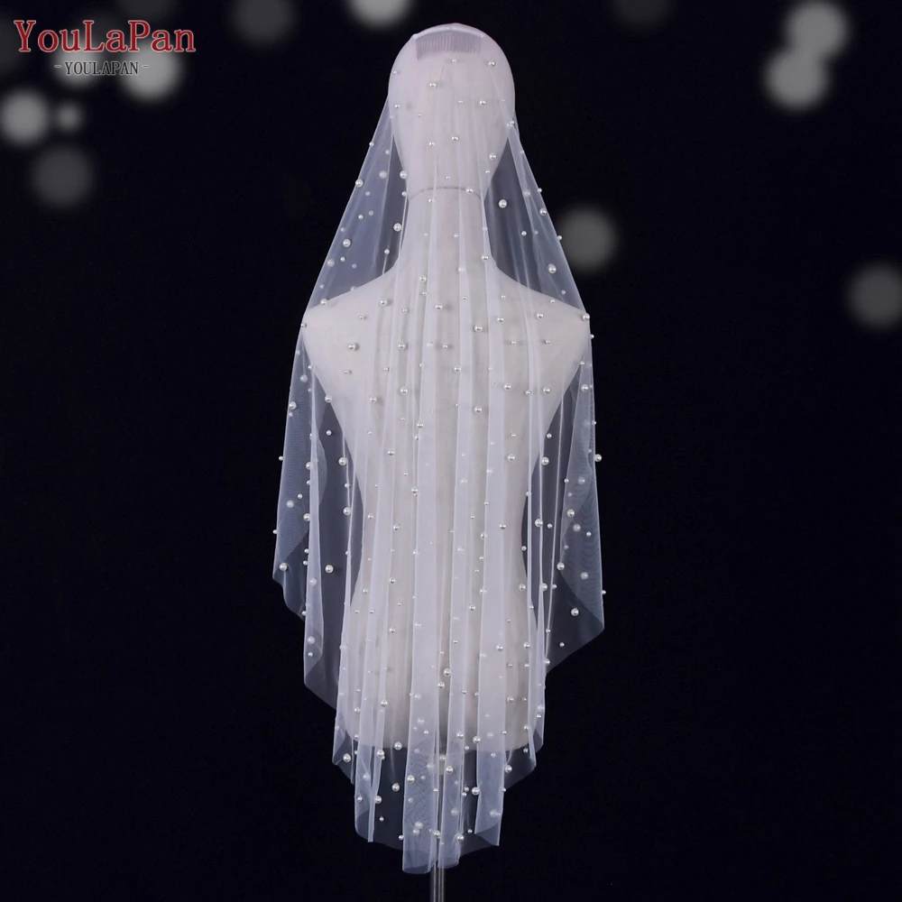 Фата свадебная YouLaPan V01, королевская жемчужная вуаль для невесты, 1 ярусная Фата, Металлический Гребень для свадебных украшений, цвет слоновой кости, белый
