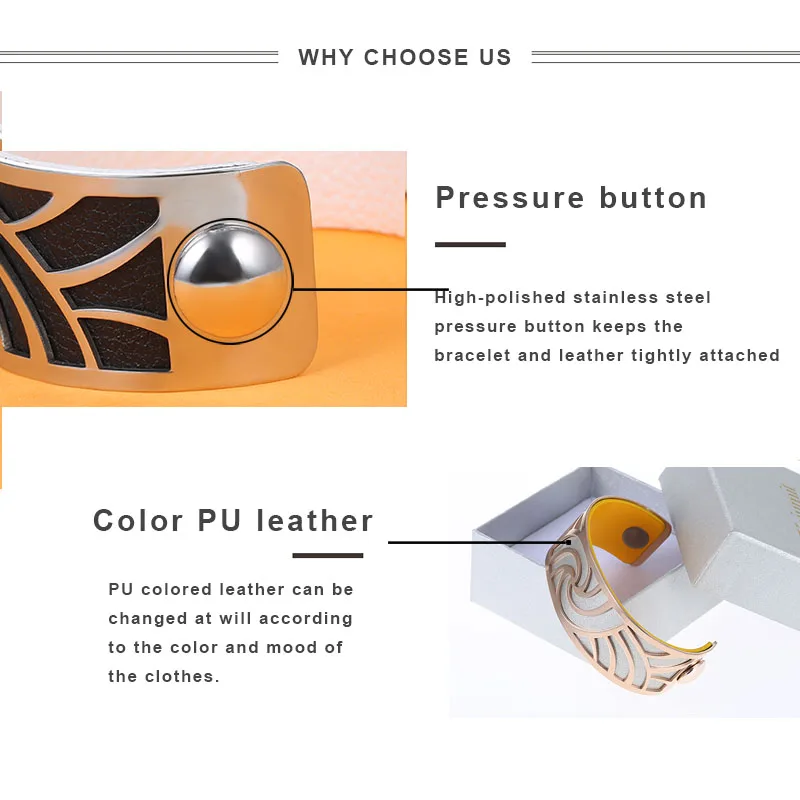 Женский Браслет-манжета из нержавеющей стали, со сменной кожей