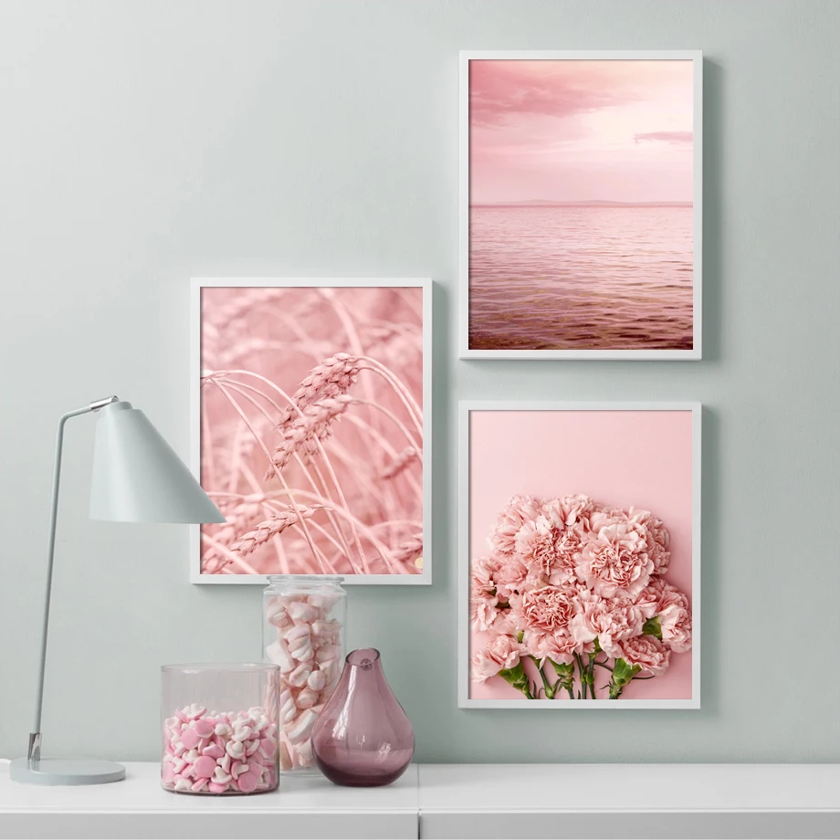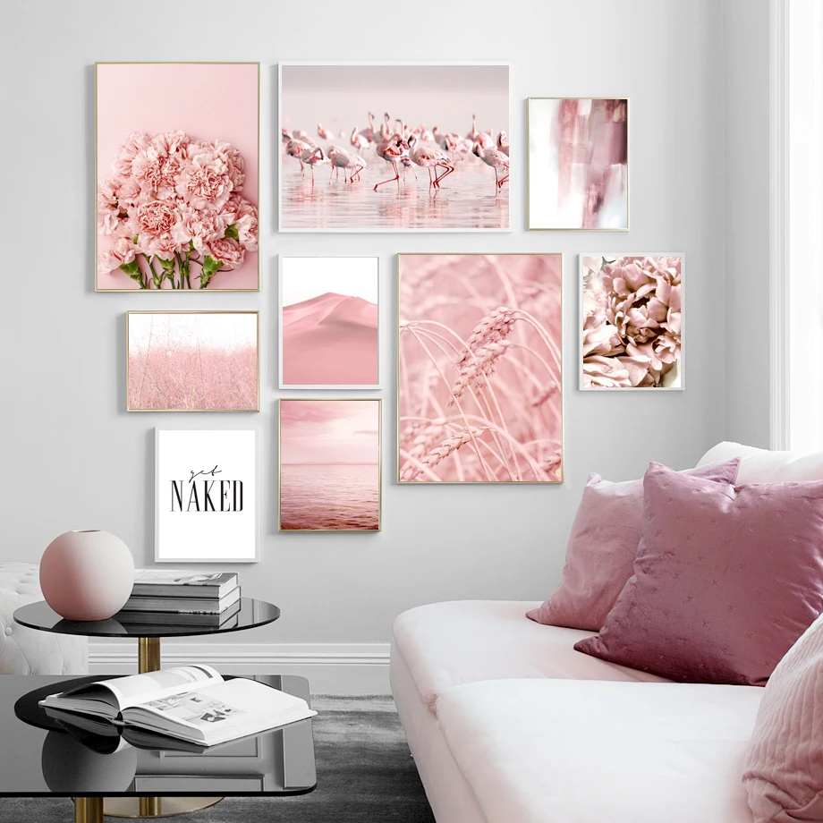 Настенная картина розового моря, фламинго, дюна, рисовый цветок, цитаты, Картина на холсте, скандинавские постеры и принты, настенные картины для декора гостиной