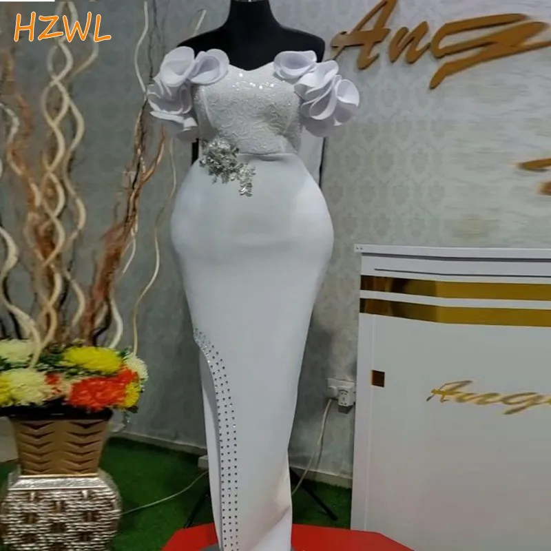 Белые привлекательные вечерние платья русалки с длинным рукавом 202...