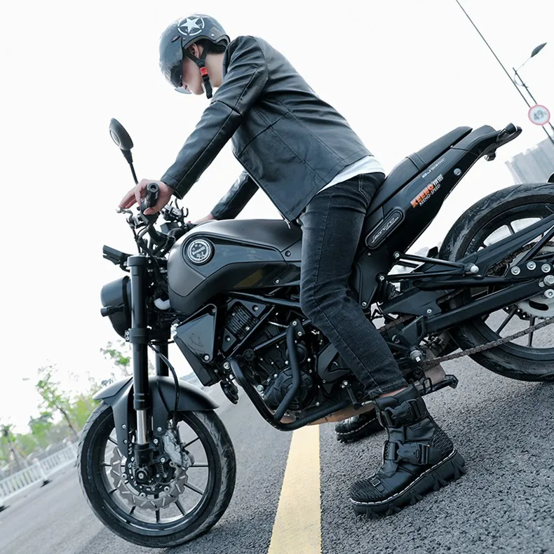 Мотоциклетные ботинки из натуральной кожи, с черепом, ботинки в стиле панк для мотокросса, обувь для катеров, мотоциклетные гоночные ботинки, для скоростной езды, Gray50