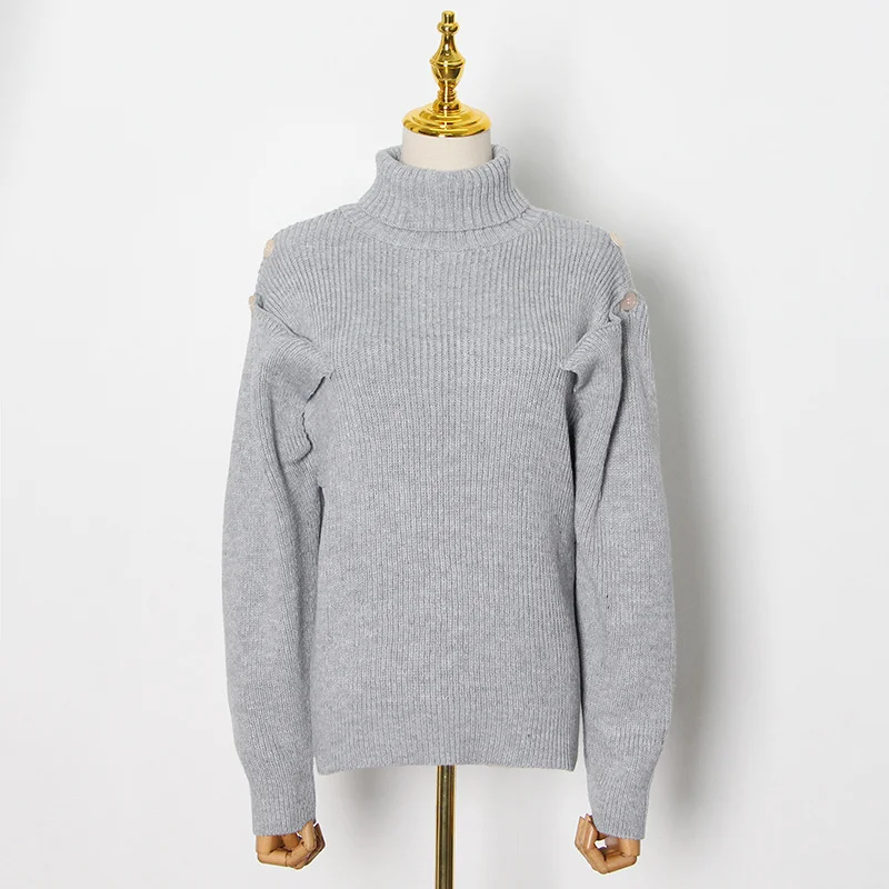 Женский Асимметричный свитер GALCAUR, трикотажный свитер в стиле пэчворк с высоким воротом и длинными рукавами-фонариками, новинка 2020
