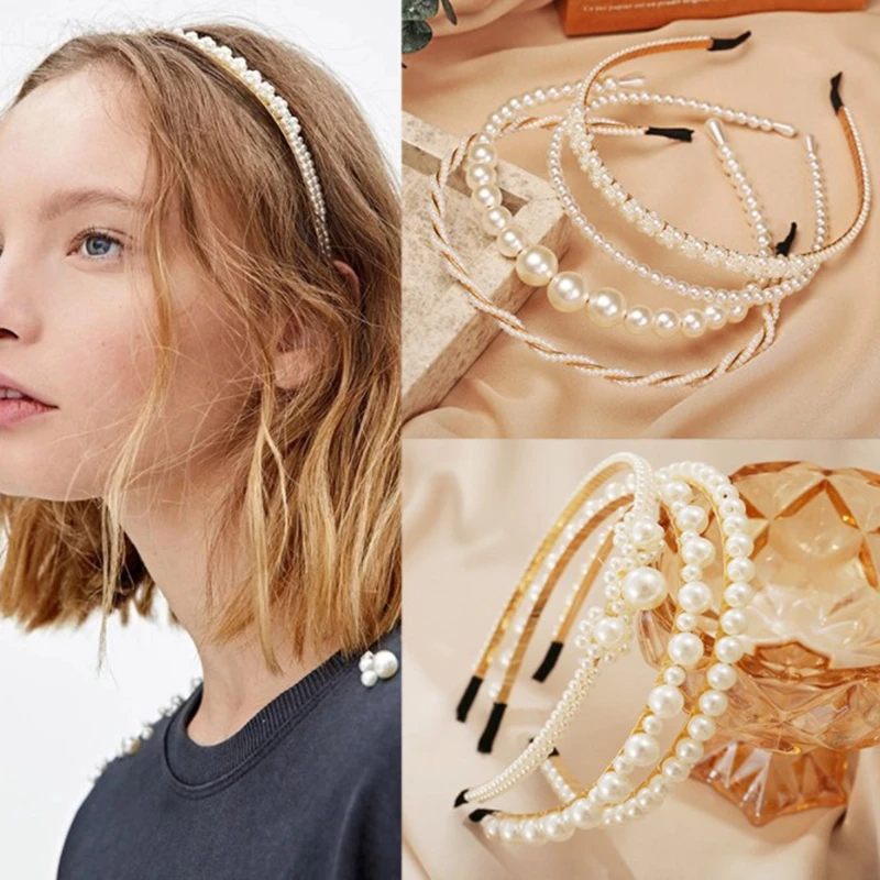 Женский обруч для волос с имитацией жемчуга, обруч для волос ручной...