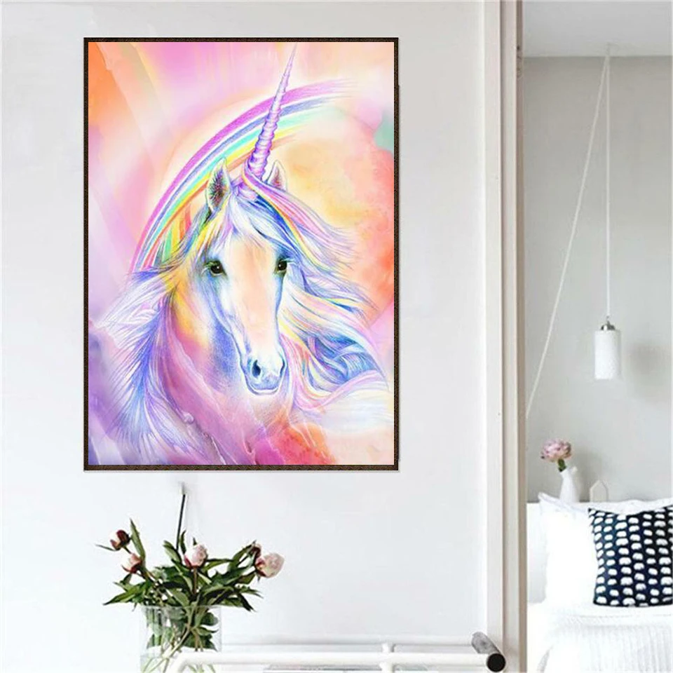 Картина из страз "сделай сам" 5D, Волшебный единорог, вышивка крестиком, квадратная Алмазная вышивка, мозаика, икона, украшение для дома