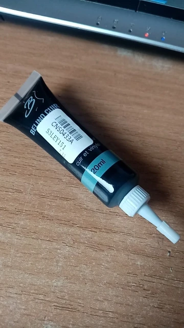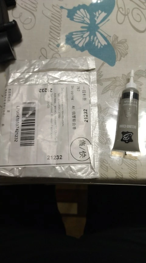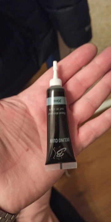 Получил на почте через 21 день. Пришло вместе с другим заказом от другого продавца в одной посылке. Все хорошо, но в дороге тюбик бал поврежден, выдавило содержимое не много. Попробовал на коже и пластике. Эффект восстановления хороший. Советую использовать с сухой губкой. Для заделки колотых следов на коже подойдёт косметическая лопатка (ищите у женщин в косметичку, они их используют для нанесения маски на лицо).