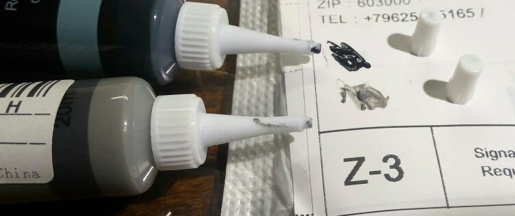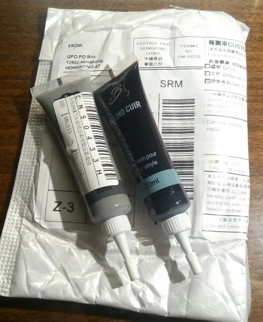 Посылка шла около месяца. Заказывал гель черного цвета для ремонта потертостей на кожаном водительском кресле. Взял на всякий случай 2 тюбика, что оказалось излишним - с моими повреждениями (см. фото) расход оказался небольшим. Результатом в принципе доволен, конечно новым кресло уже не станет, но вид стал намного лучше. Гель наносил ватной палочкой, другим концом которой убирал излишки.