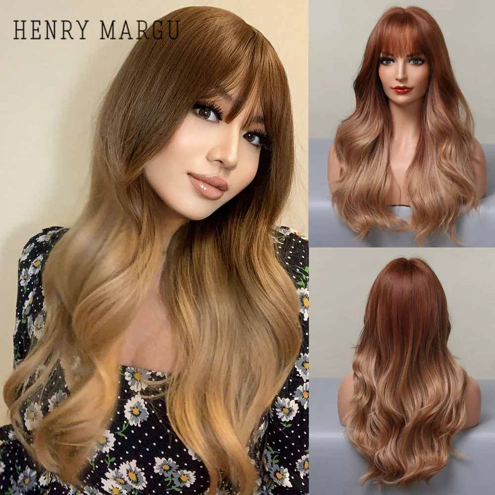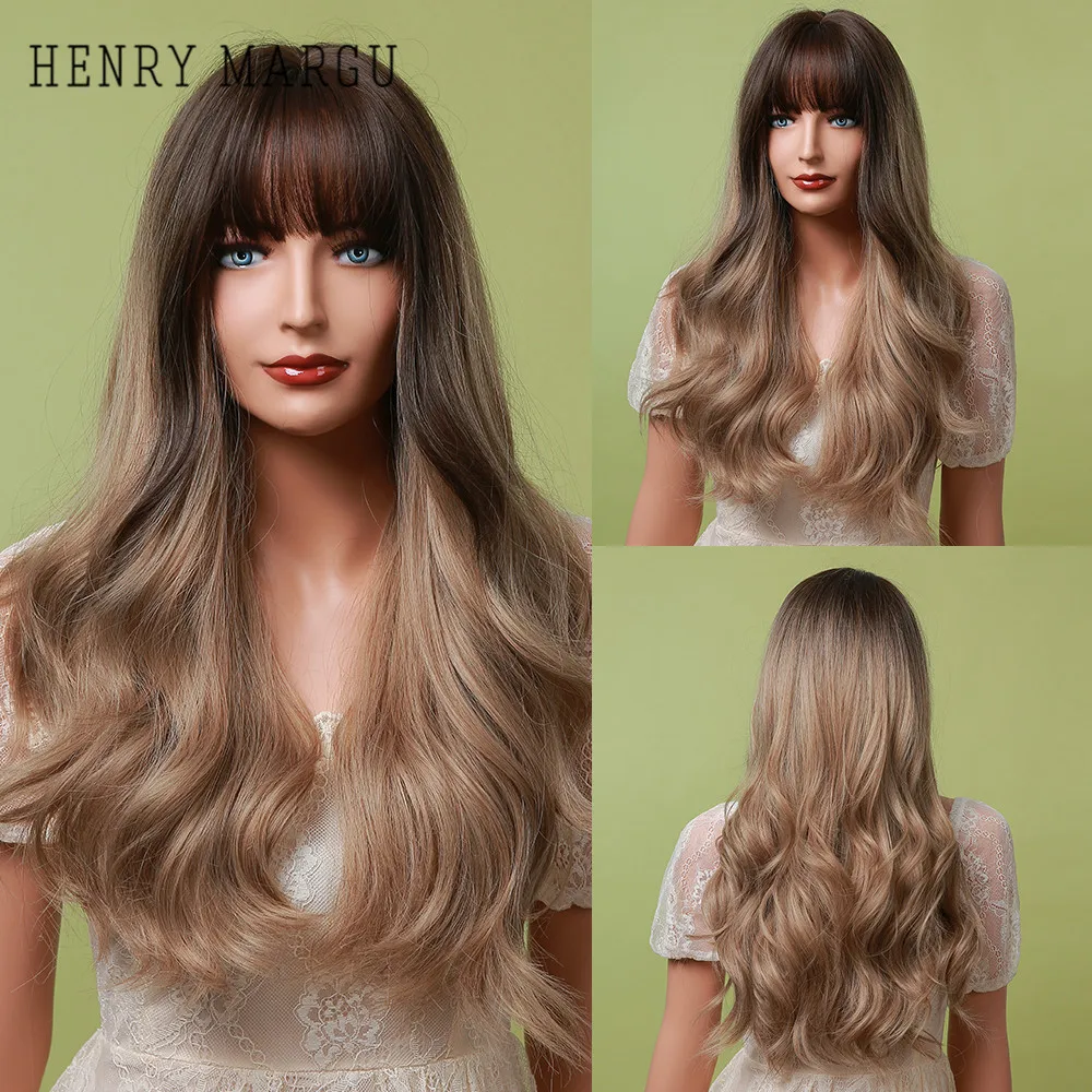 Длинные волнистые синтетические парики с челкой HENRY MARGU, жаростойкие вечерние парики для косплея, парики из натуральных волос для женщин