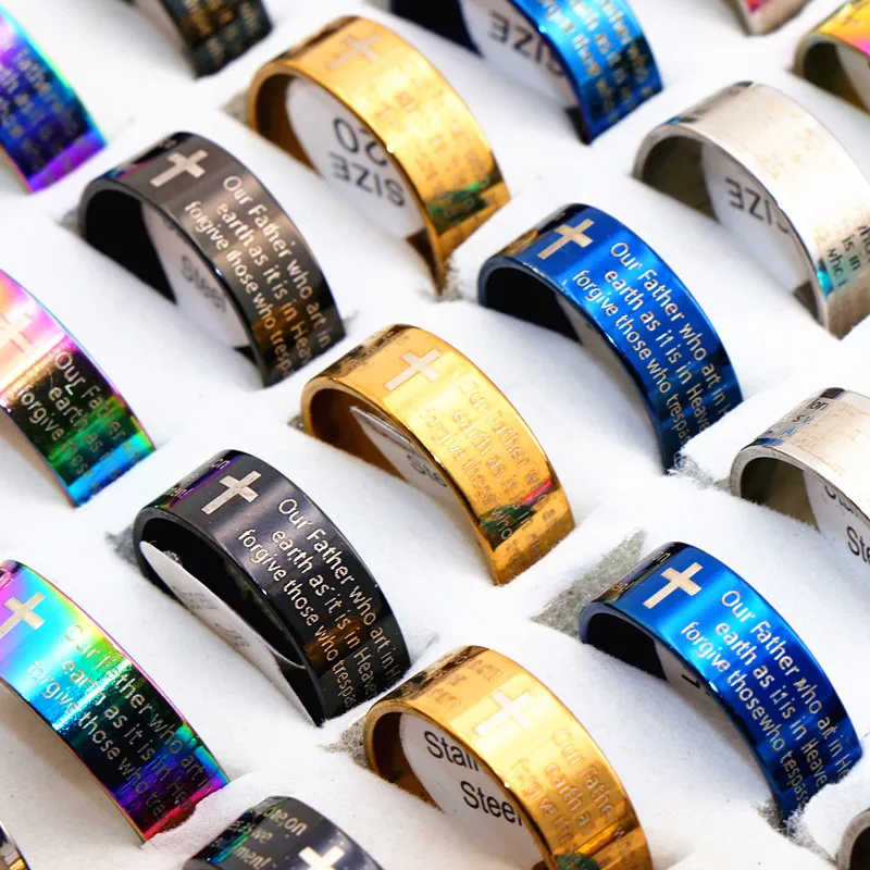 Кольца унисекс из нержавеющей стали, 10 шт.лот, с изображением английского Иисуса, разные цвета