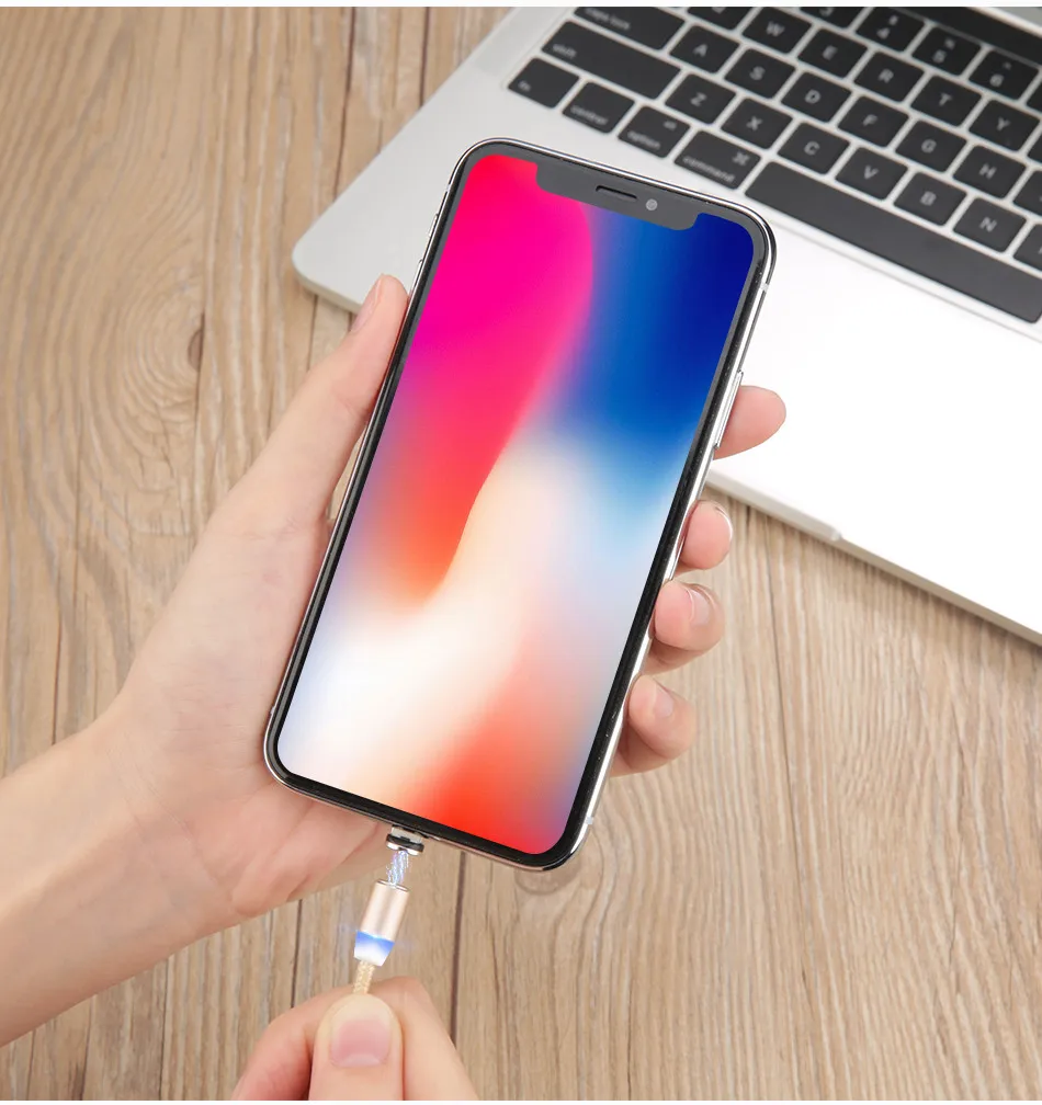 Магнитный кабель USLION со светодиодной подсветкой, Micro USB, кабель для быстрой зарядки, Тип C, Micro кабель, магнитное зарядное устройство для Samsung, Xiaomi, адаптер USB для iPhone 11