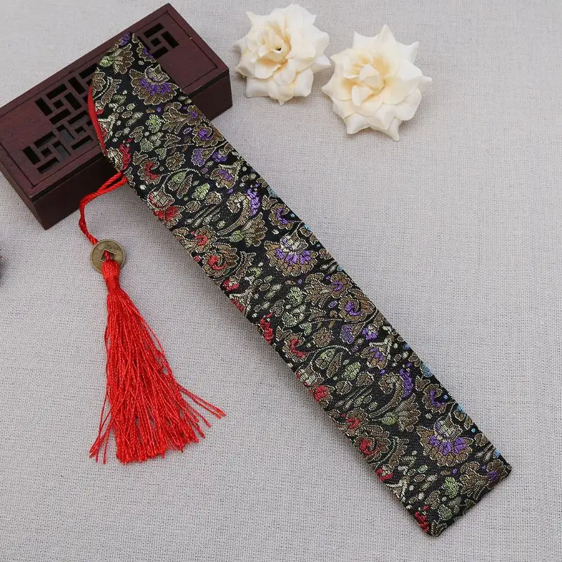 Шелковый складной китайский чехол для вентилятора с кисточкой и пылезащитным держателем чехол в ретро стиле